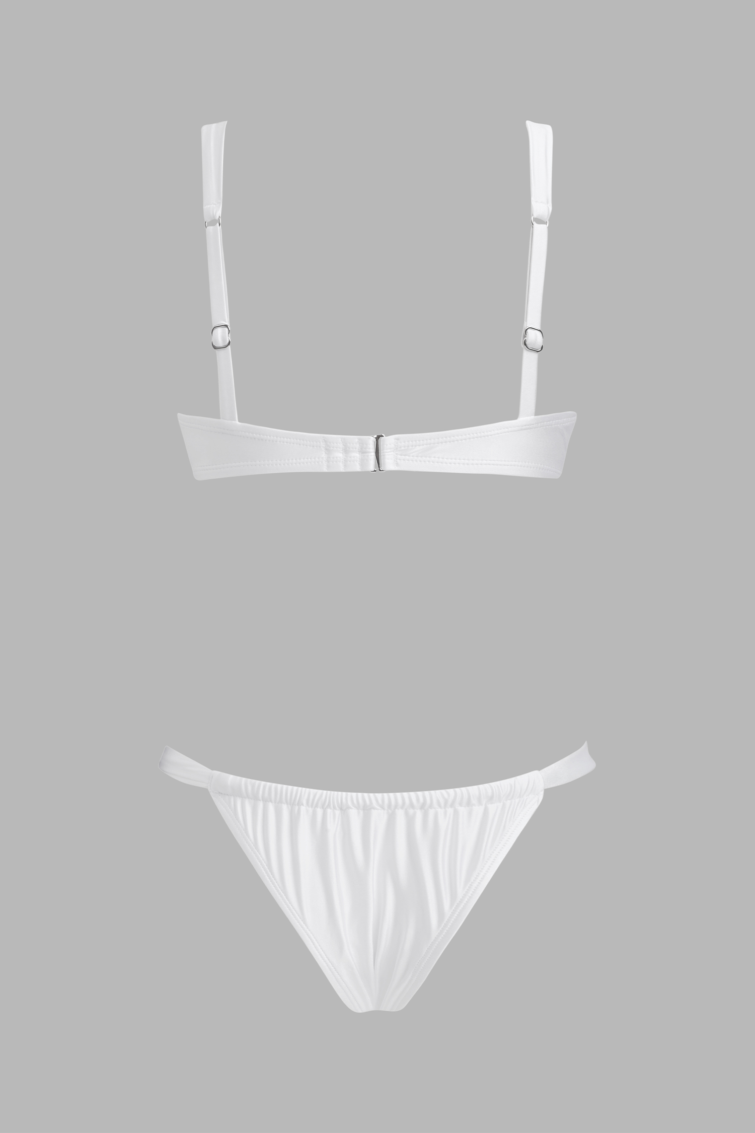 Entfesseln Sie Ihre innere Göttin mit dem Bikini Set! Der herzförmige Ausschnitt und die verstellbaren Träger sorgen für eine schmeichelhafte Passform, während die Bügel und der hohe Büstenhalter für Komfort und Sicherheit sorgen. Das Set hat eine niedrige Passform, einen extra hohen Beinausschnitt und einen frechen Po - perfekt, um ein Statement zu setzen.