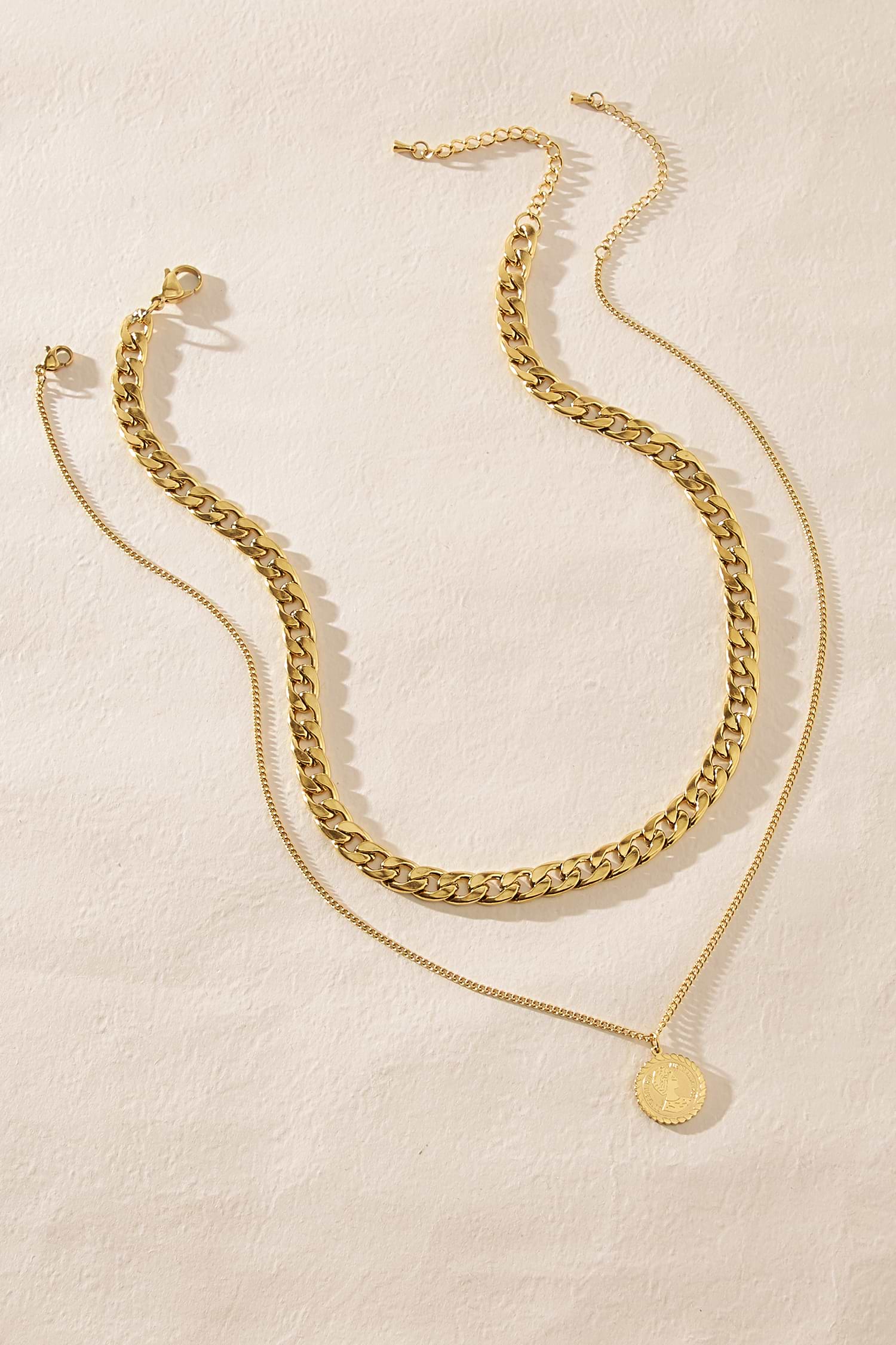 HomeGoldfarbenes Kettenglied-Halsketten-Set