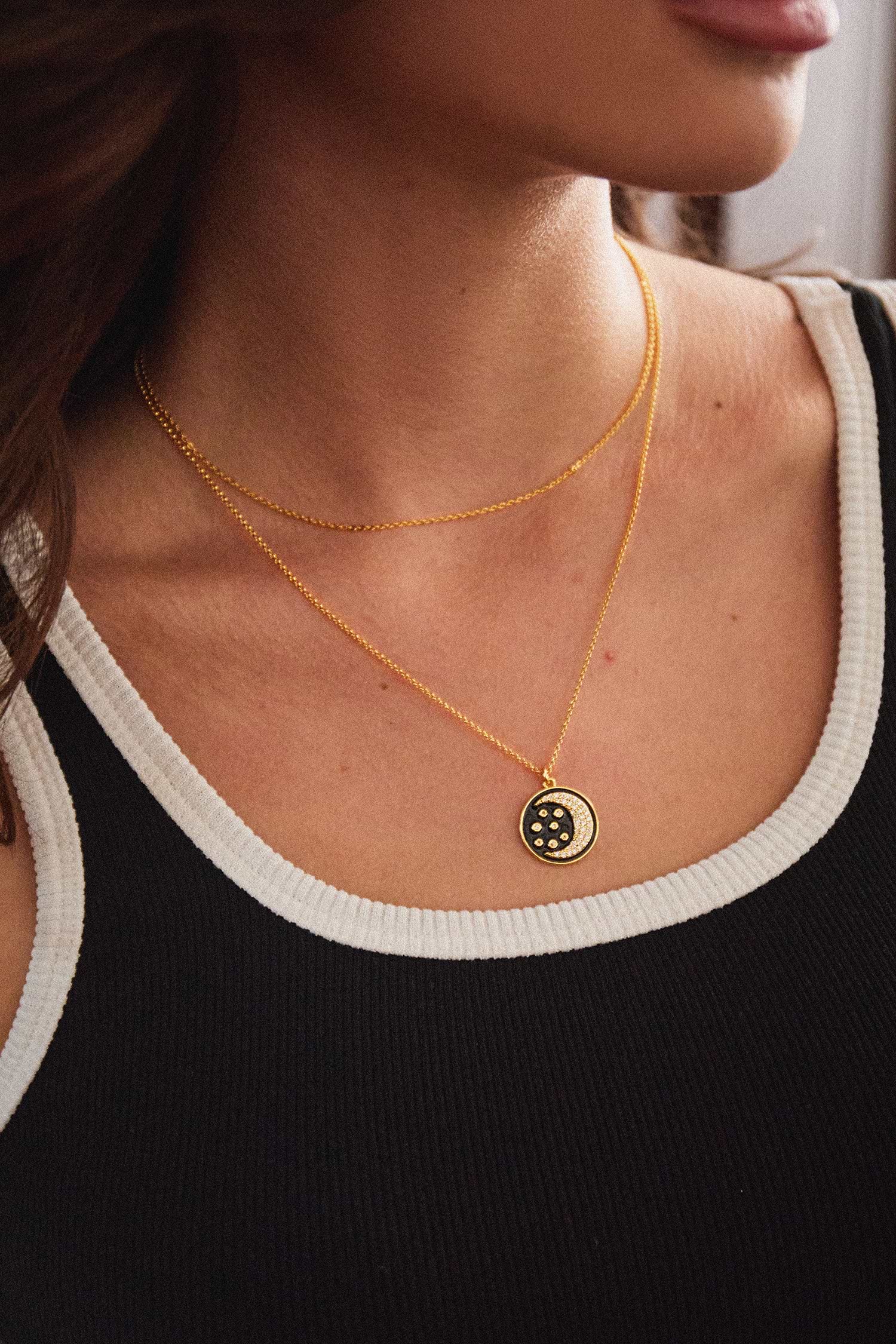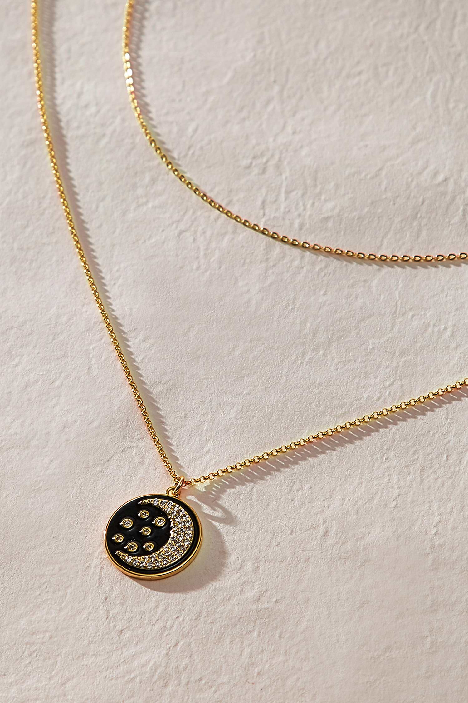 Goldfarbene kristallverzierte Halskette mit Mond-Charme