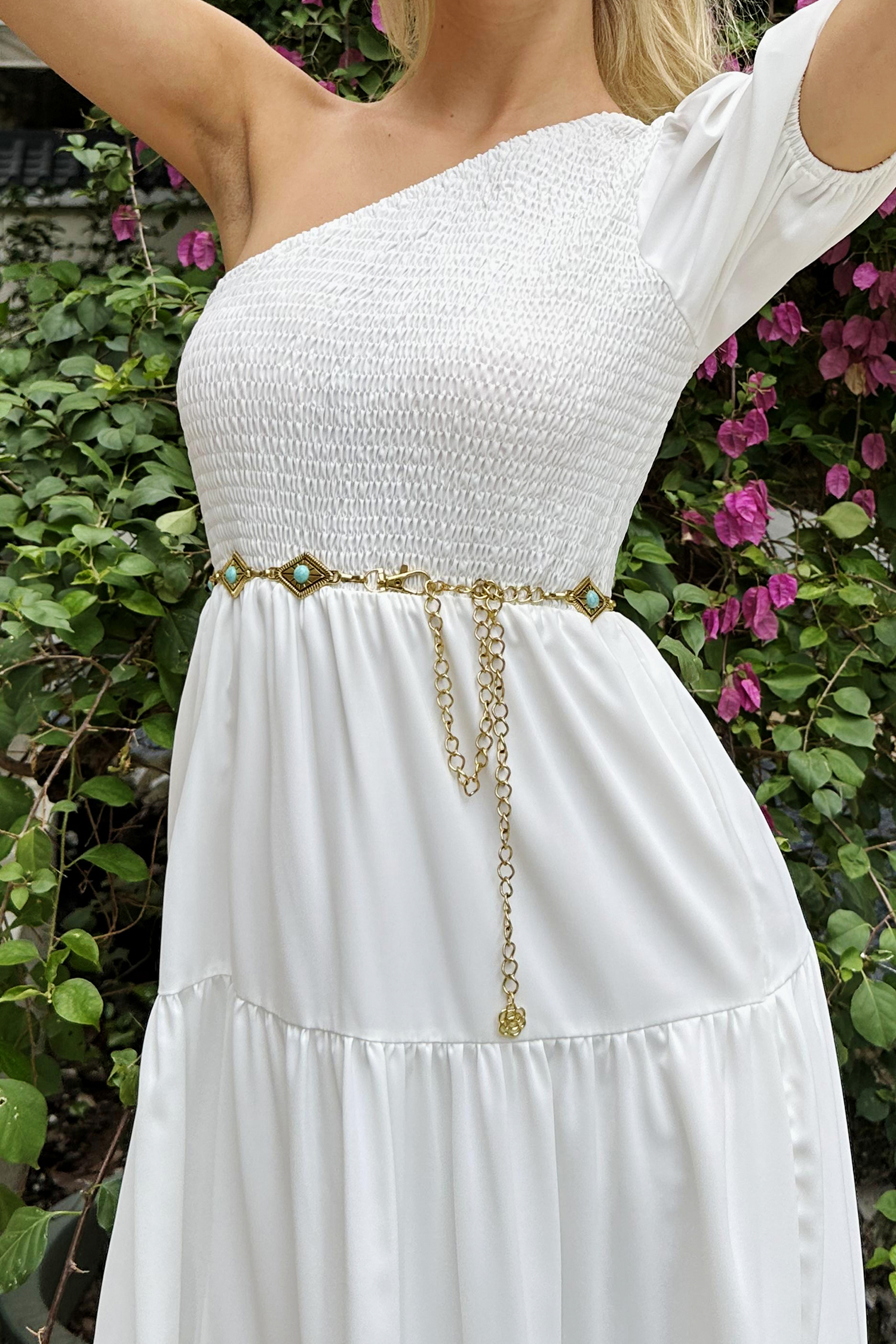Goldfarbener und türkisfarbener Kettengürtel