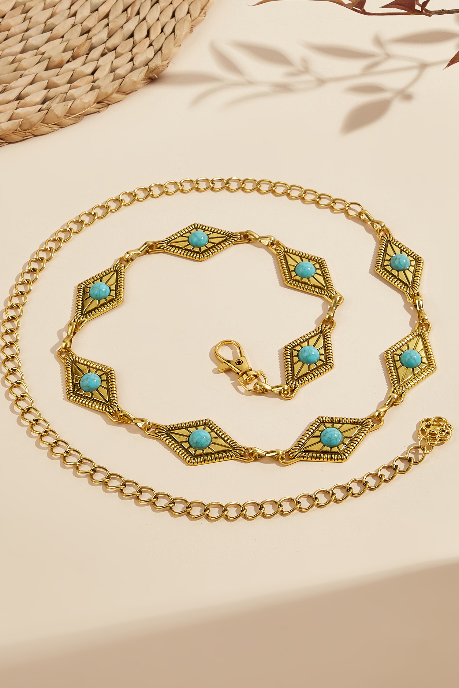 • Goldfarbener und türkisfarbener Kettengürtel
