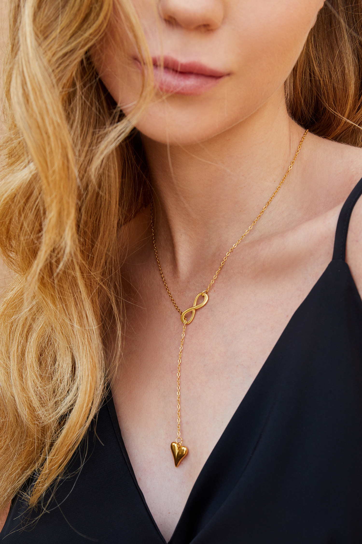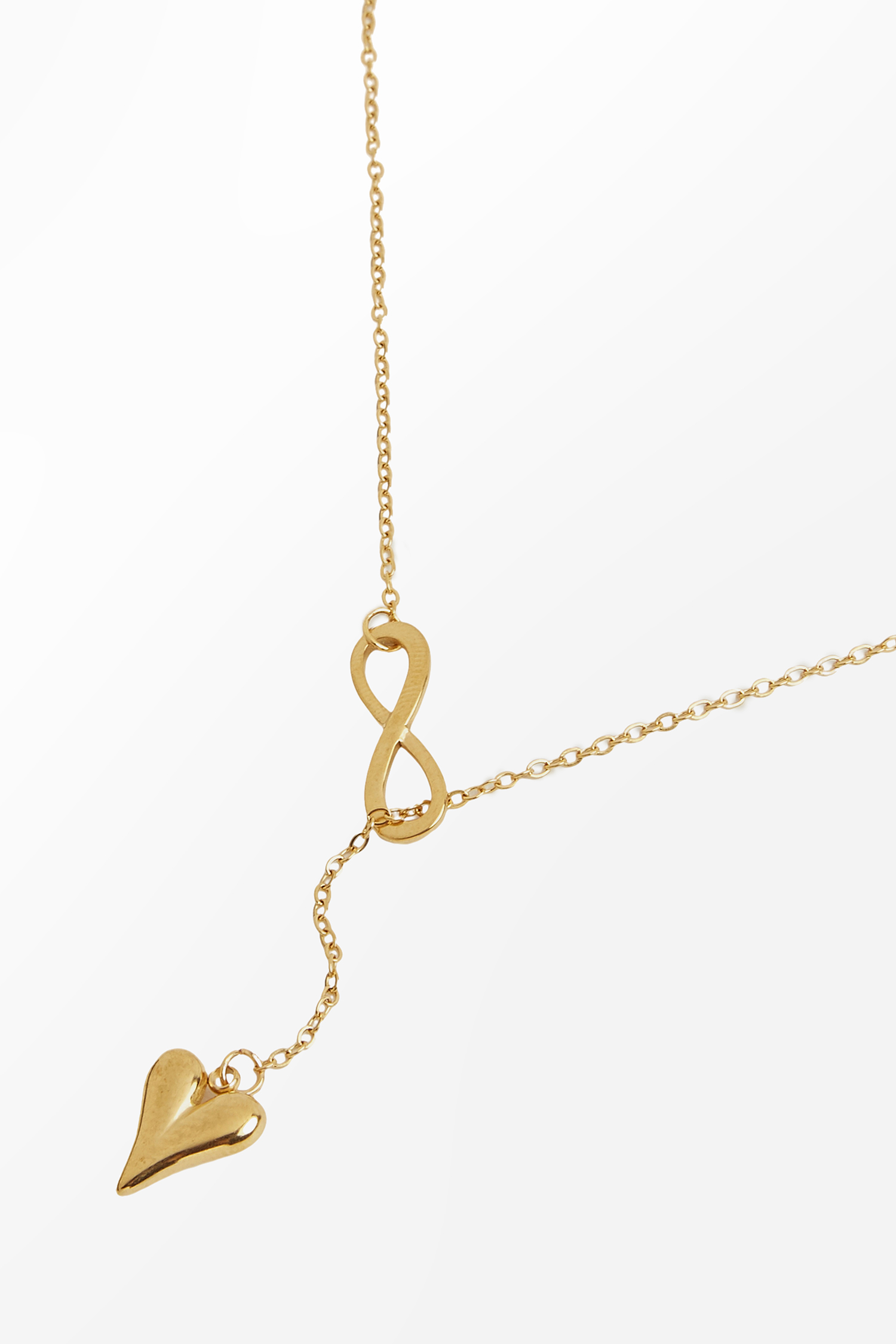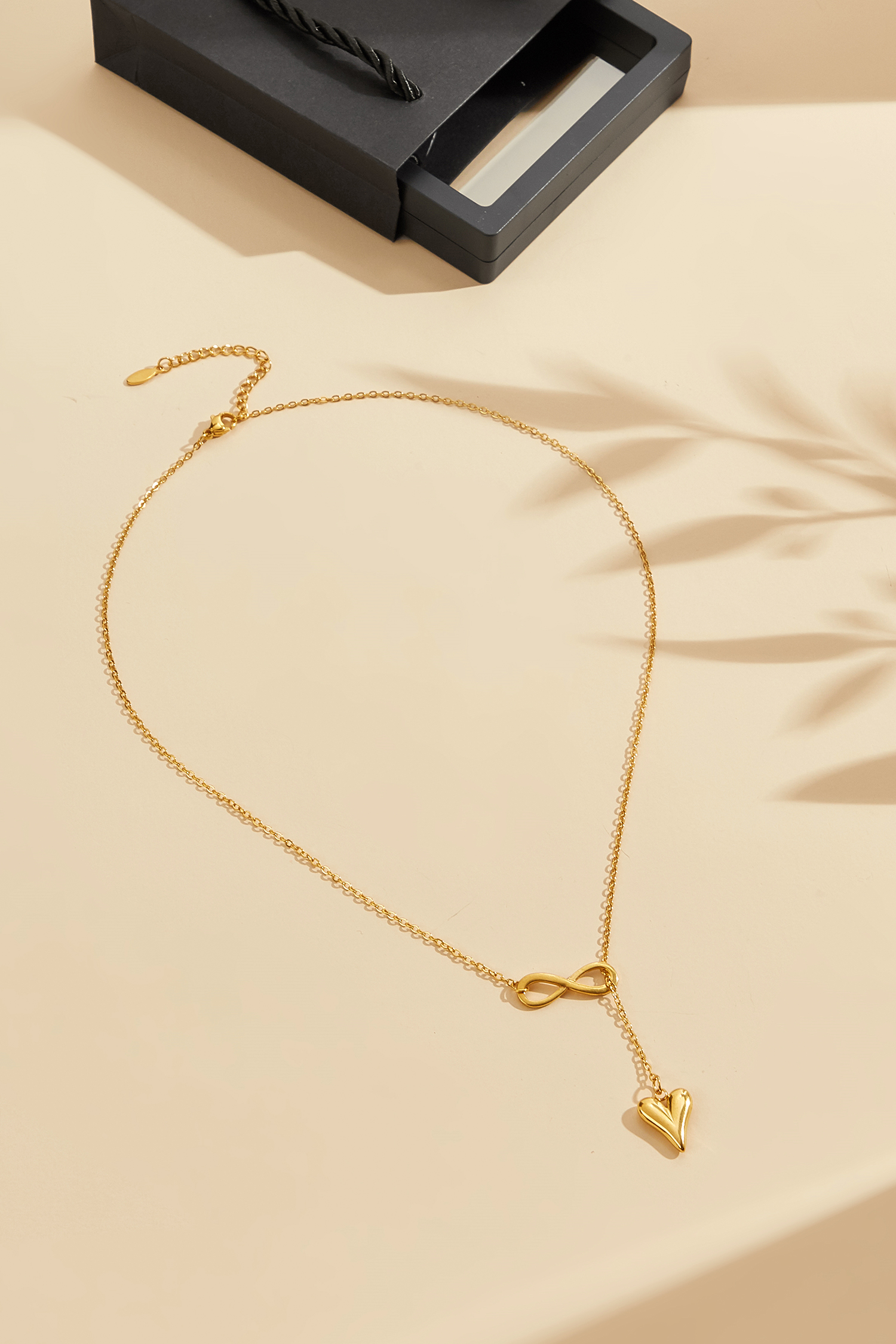 HomeGoldfarbene Unendlichkeits- und Herz-Halskette