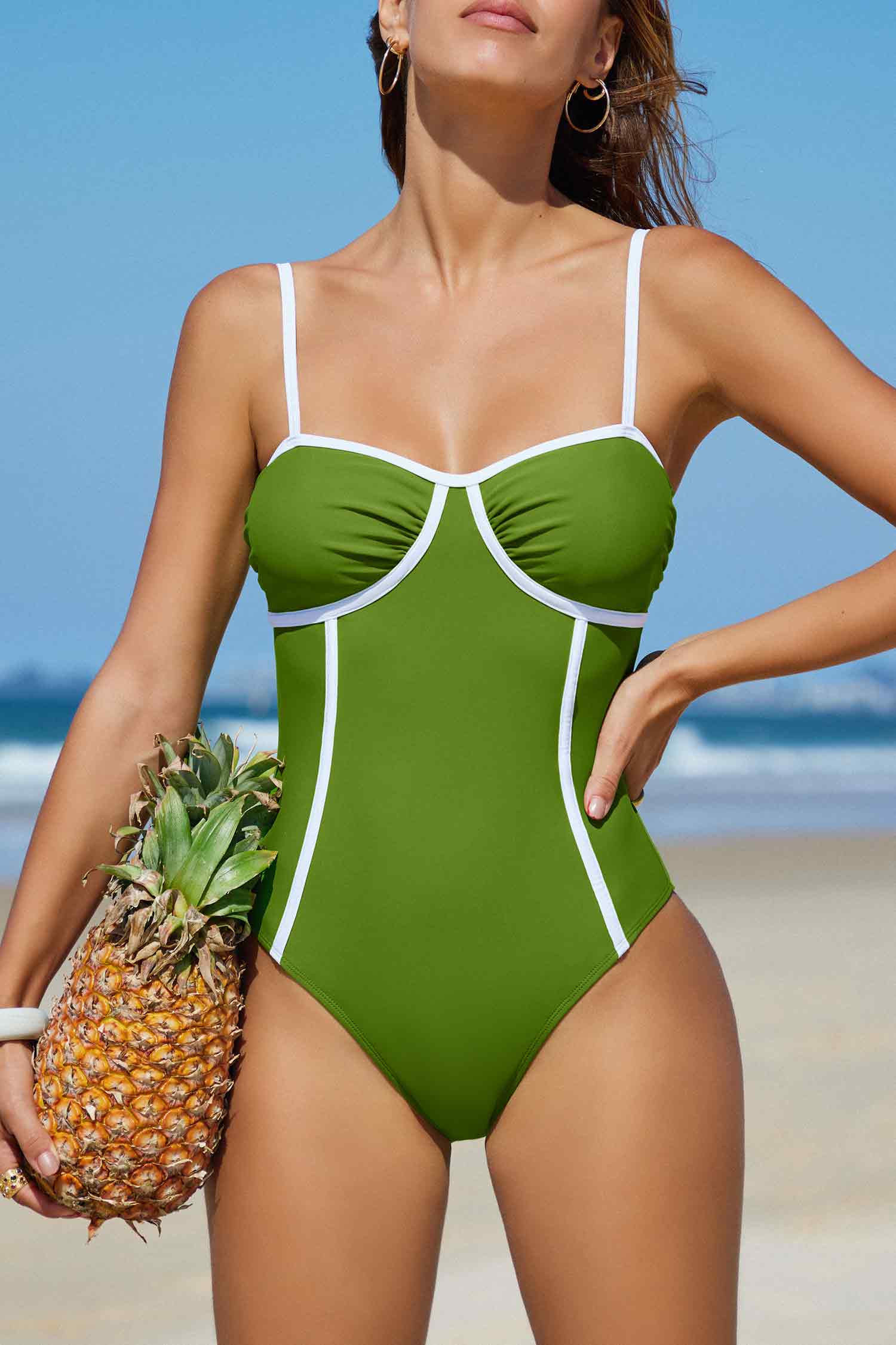 Grasgrüner Badeanzug mit quadratischem Ausschnitt
