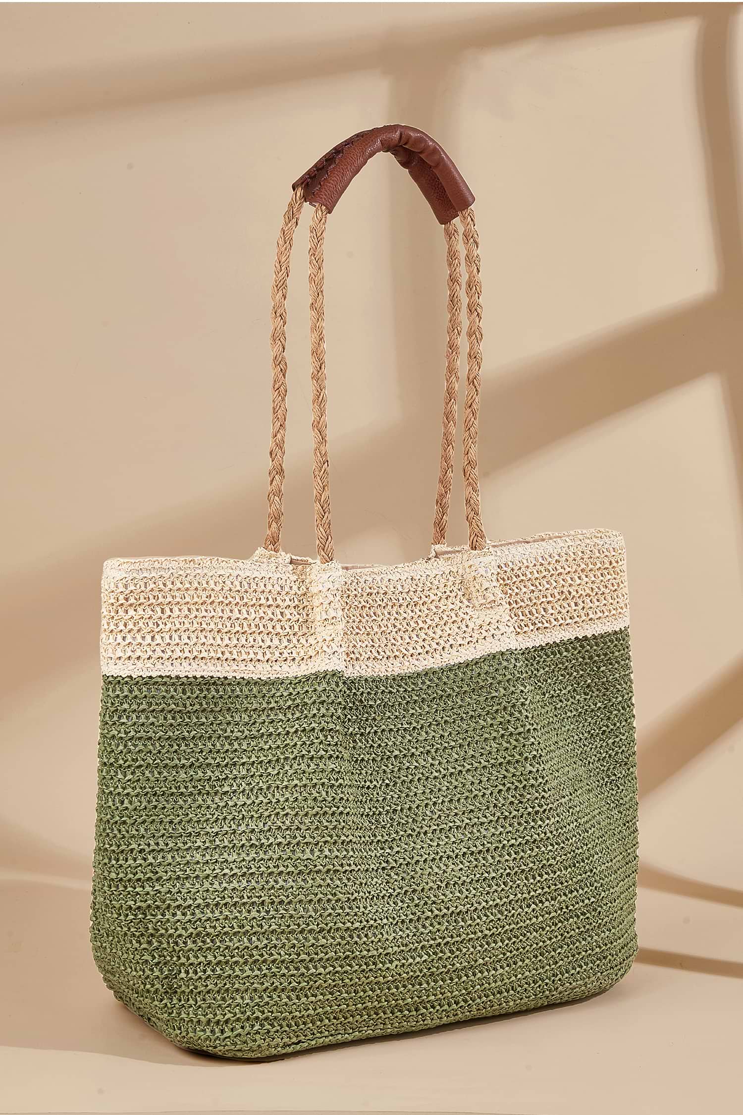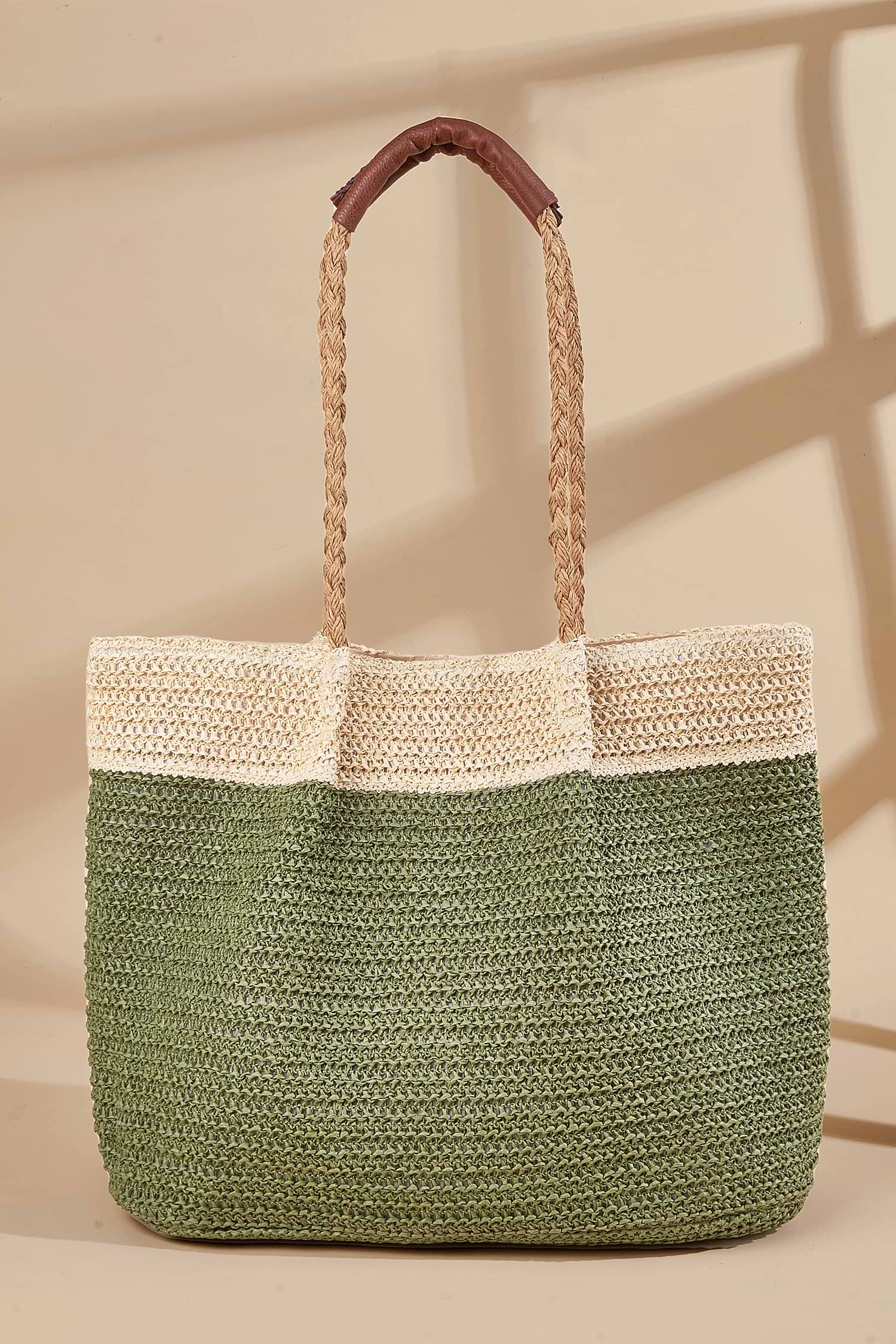 HomeGrüne & neutrale Colorblock-Häkeltasche