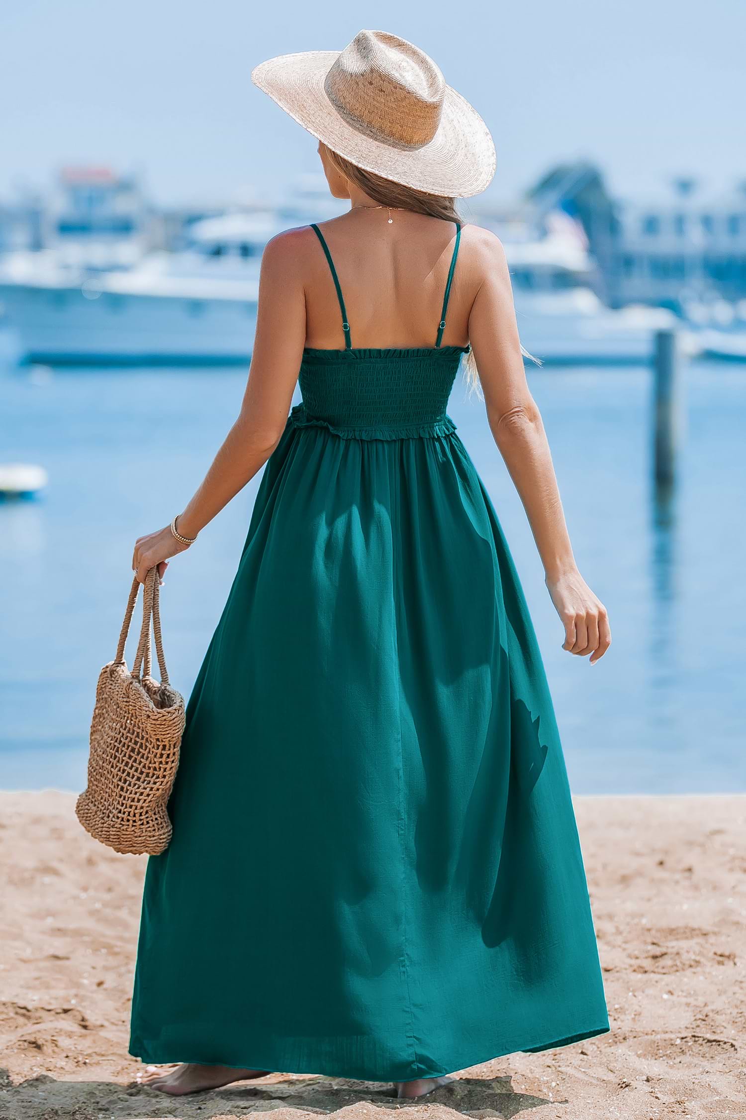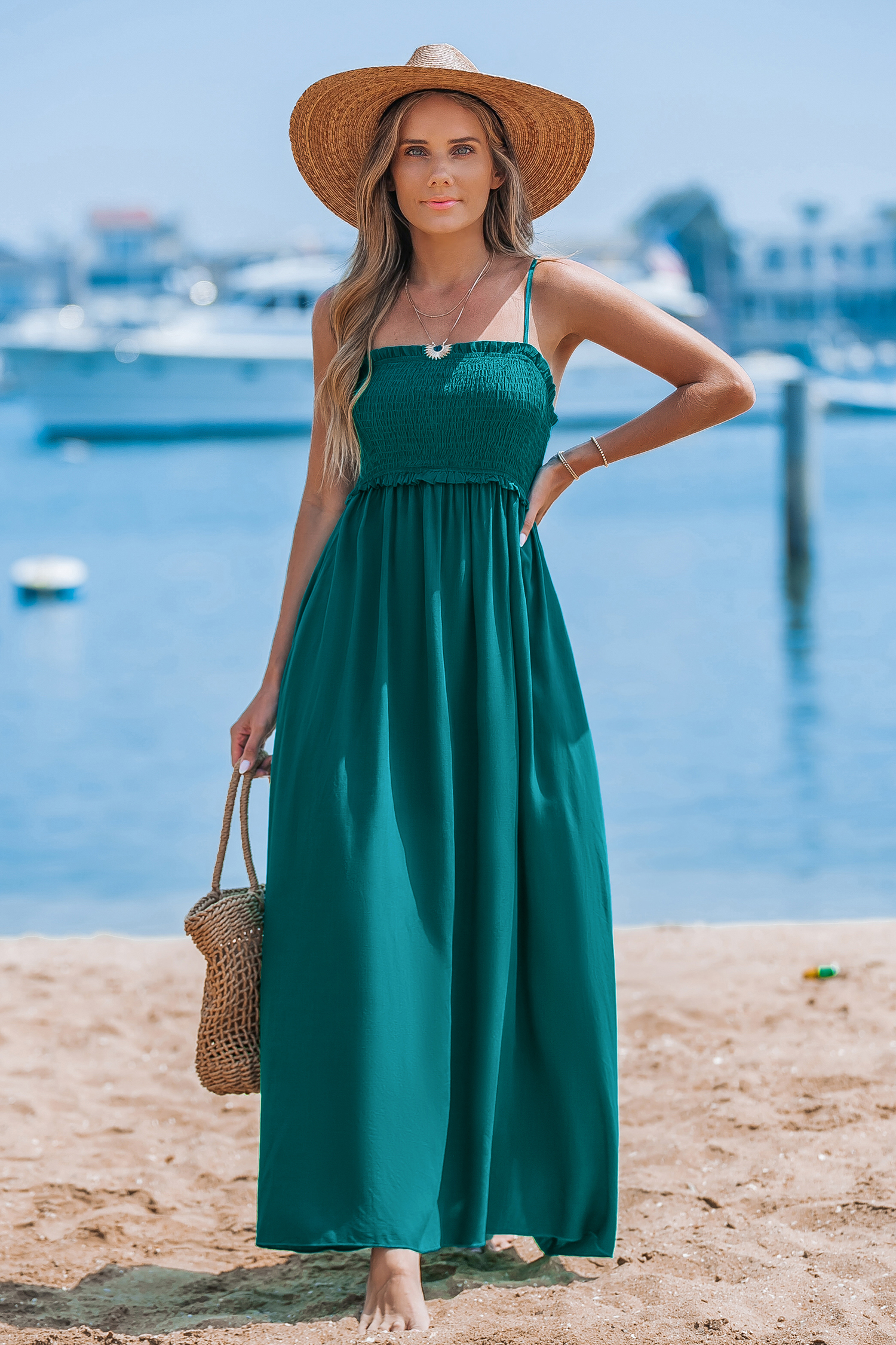Grünes ärmelloses Midikleid mit quadratischem Ausschnitt
