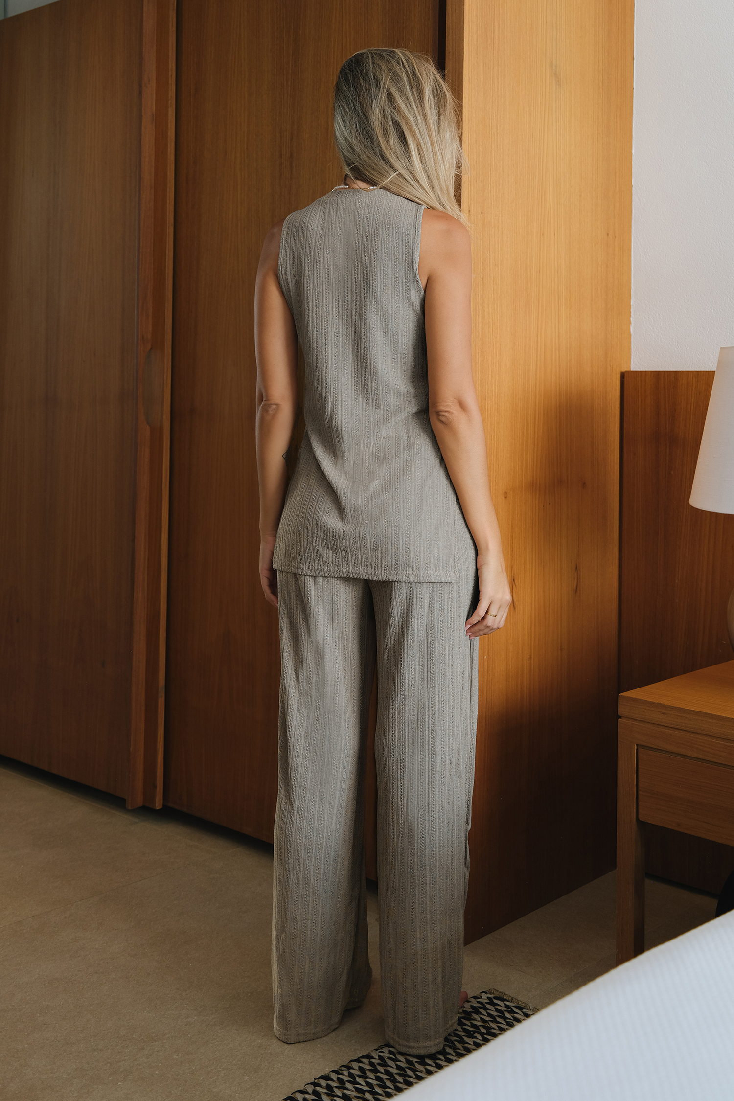 HomeGraues Rippenstrick-Pyjama-Set ohne Ärmel