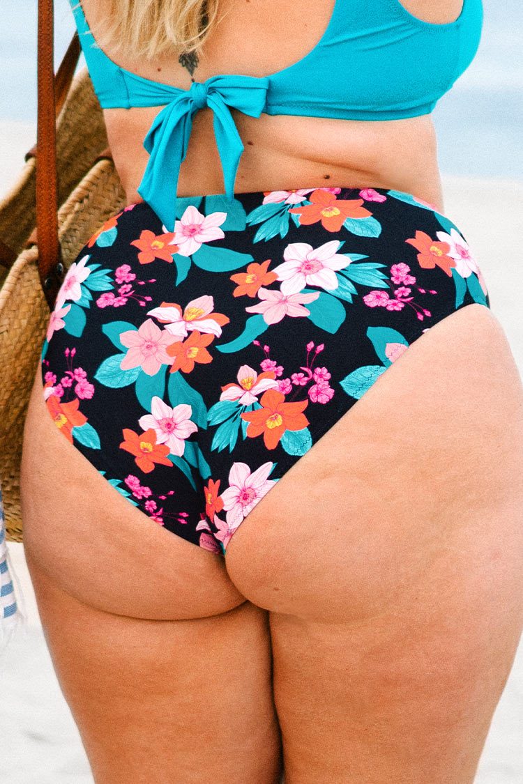 HomeGroße Größe High-waist Bikinihose mit Blumenmuster