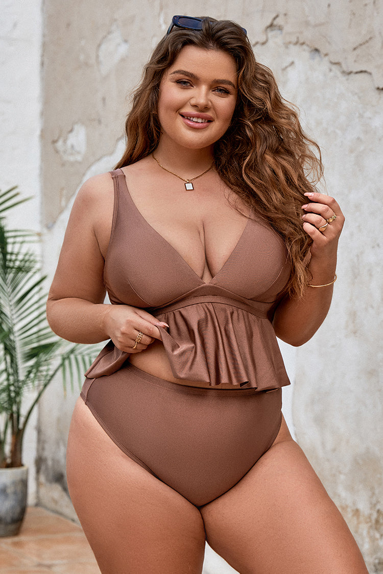 Große Größen Tankini-Set mit tiefem V-Ausschnitt und High waist