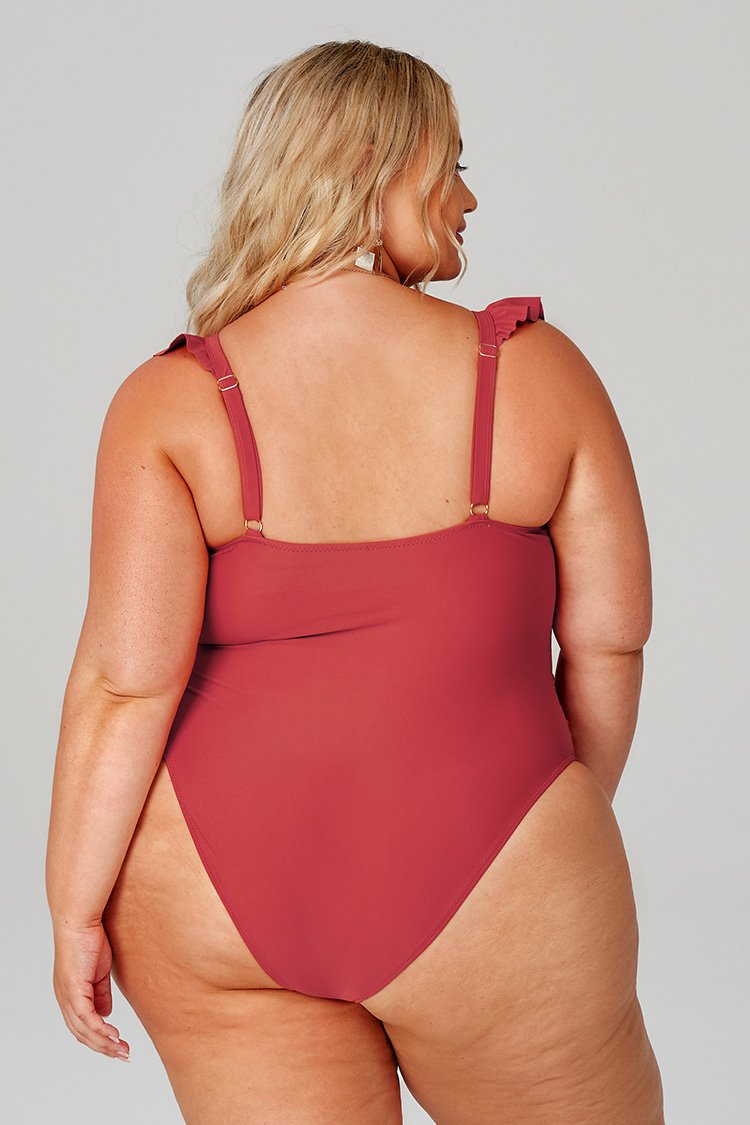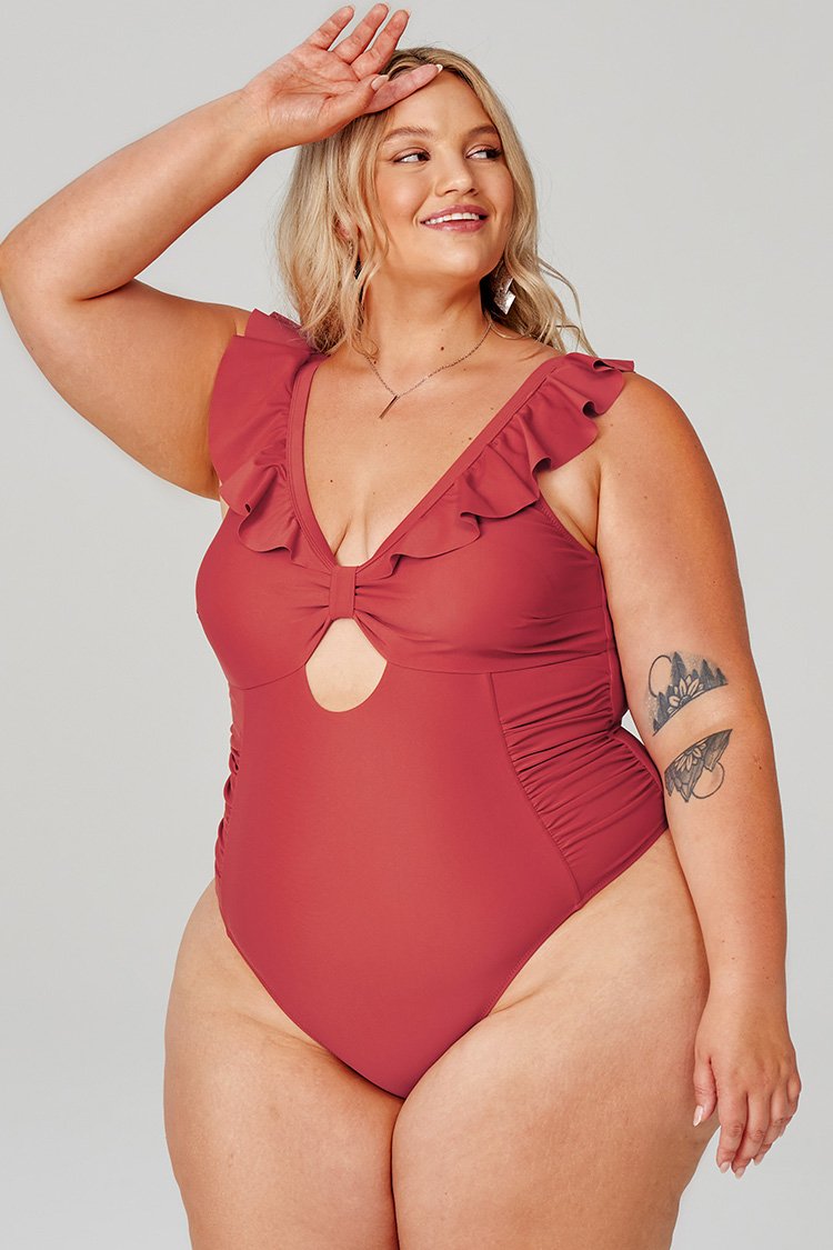 HomeGroße Größen Cutout-Badeanzug mit Rüschen