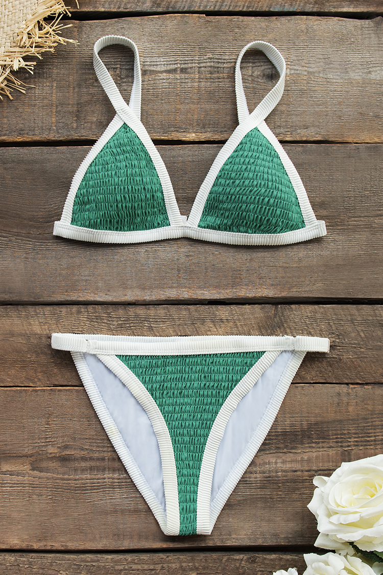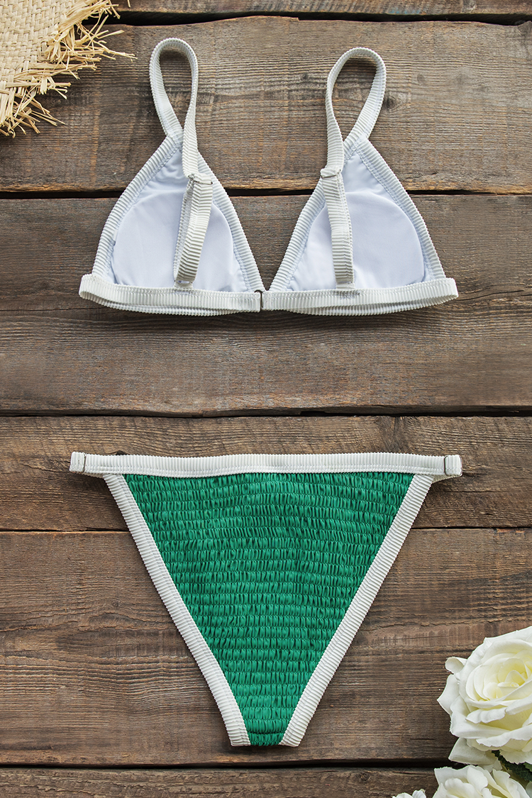 Grüner Smocked Triangel Bikini