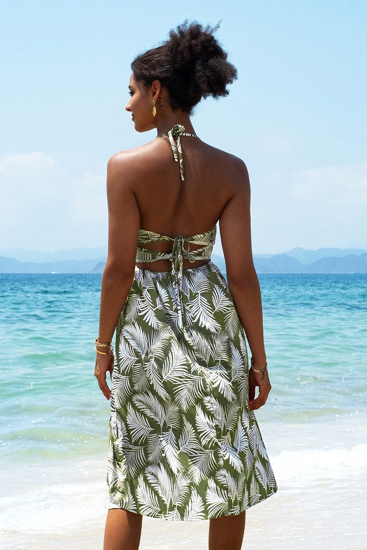 HomeGrünes Neckholder-Kleid mit Seitenschlitze