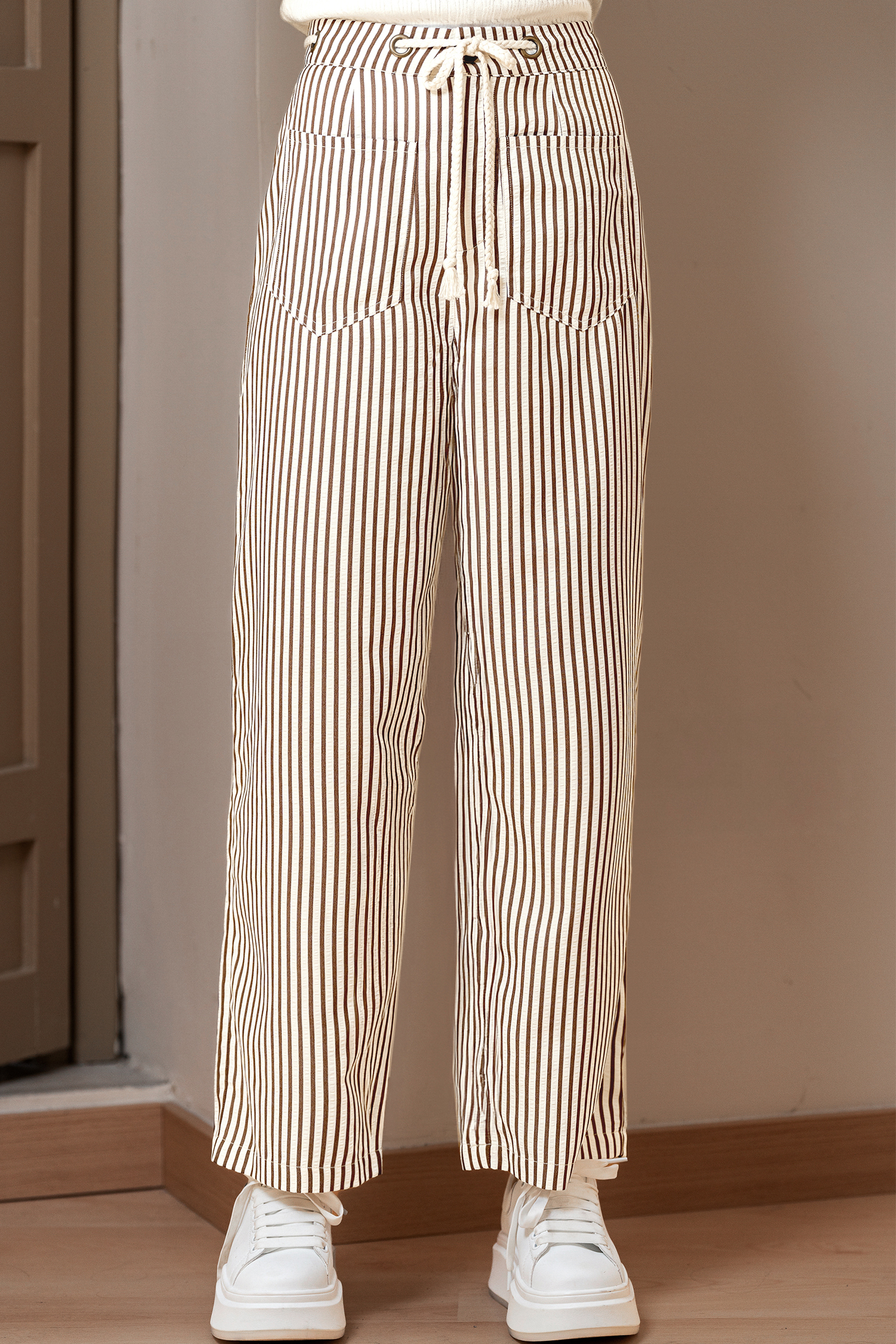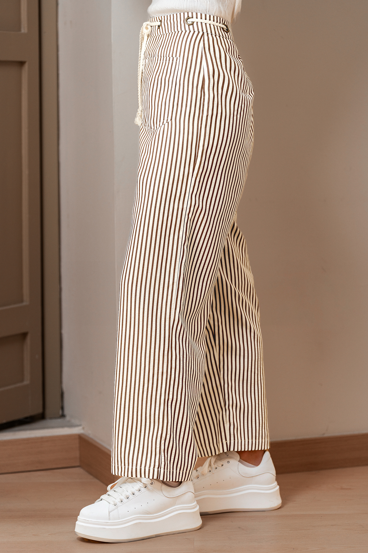 Die Hosen sind mühelos schick mit einem Hauch von küstennaher Leichtigkeit! Mit ihren Eigenschaften wie dem Tunnelzug in der Taille, den praktischen Taschen und dem geraden Beinschnitt ist sie perfekt für alles, vom Brunch bis zum Spaziergang im Sonnenuntergang.