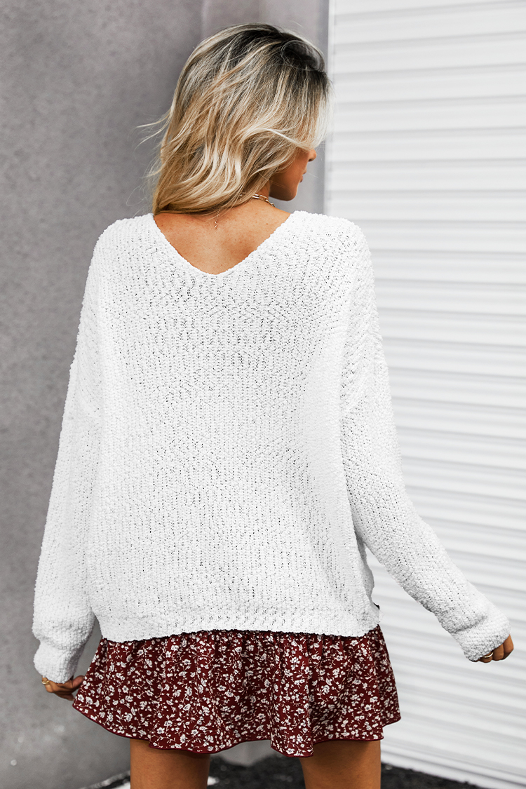 HomeHellgrauer Gehäkelter Pullover mit V-Ausschnitt