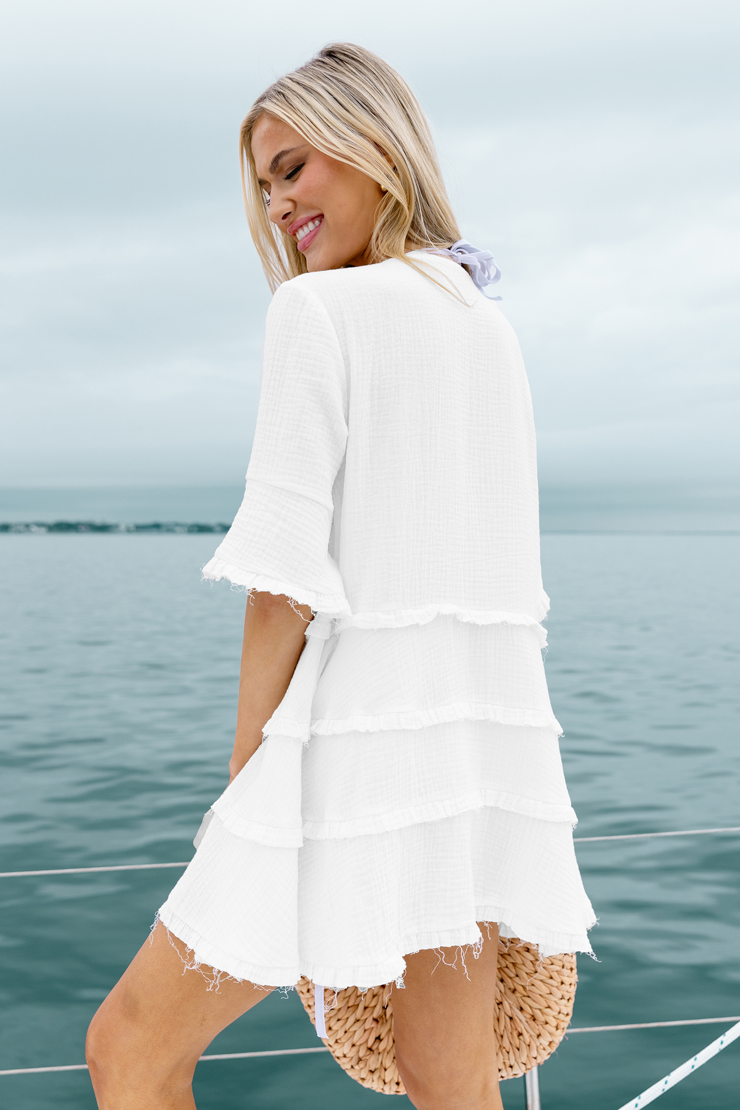 Reine Baumwolle Cover-Up-Minikleid mit Rüschen