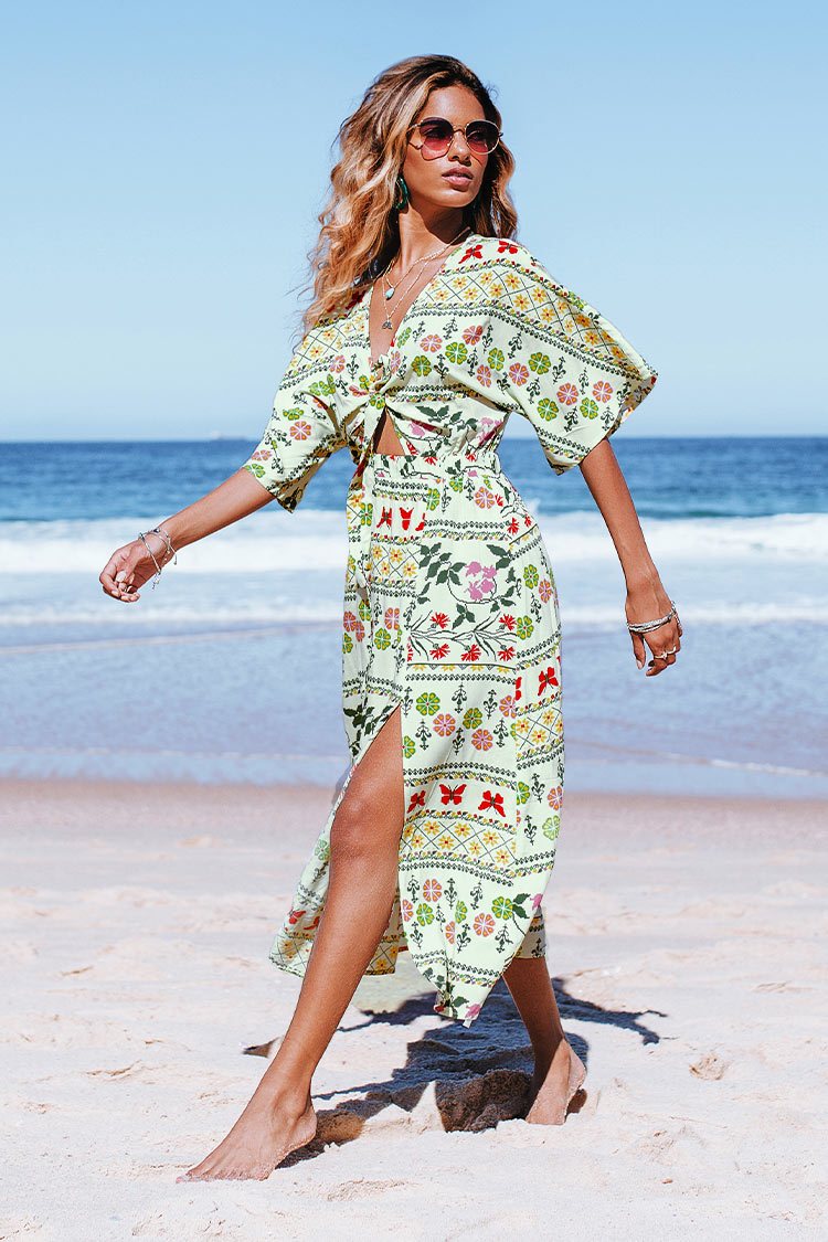 Kleid mit Blumenmuster und Schnürung vorne