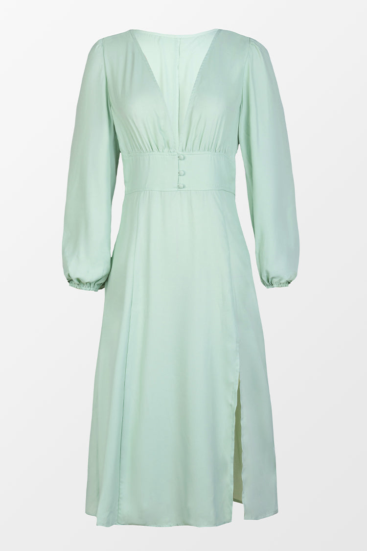 Kleid mit tiefem V-Ausschnitt und Knopfleiste vorne