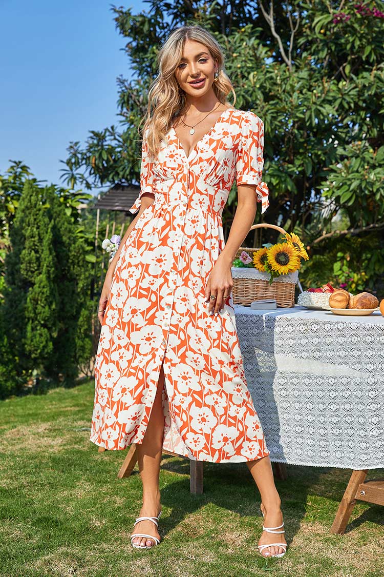 HomeKleid mit V-Ausschnitt und Blumenmuster