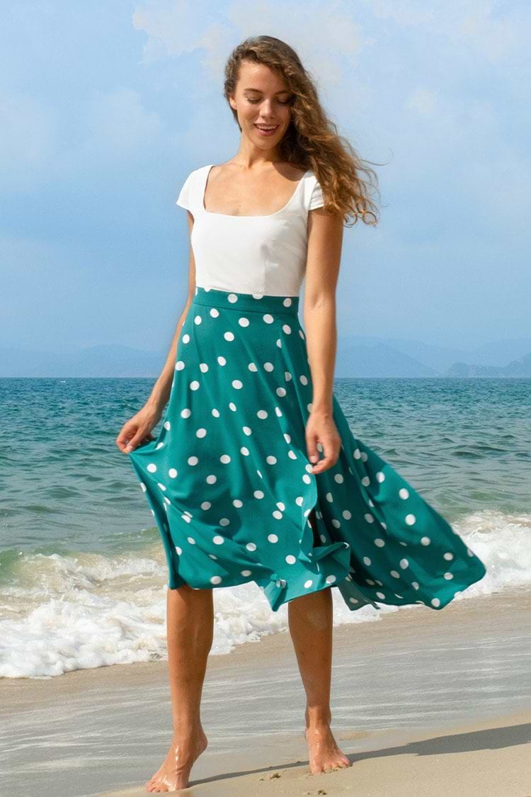 HomeKontrastfarbenes Polka Dot Kleid