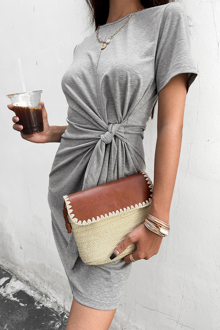 Kurzärmeliges Kleid mit Rundhalsausschnitt in mittlerer Länge