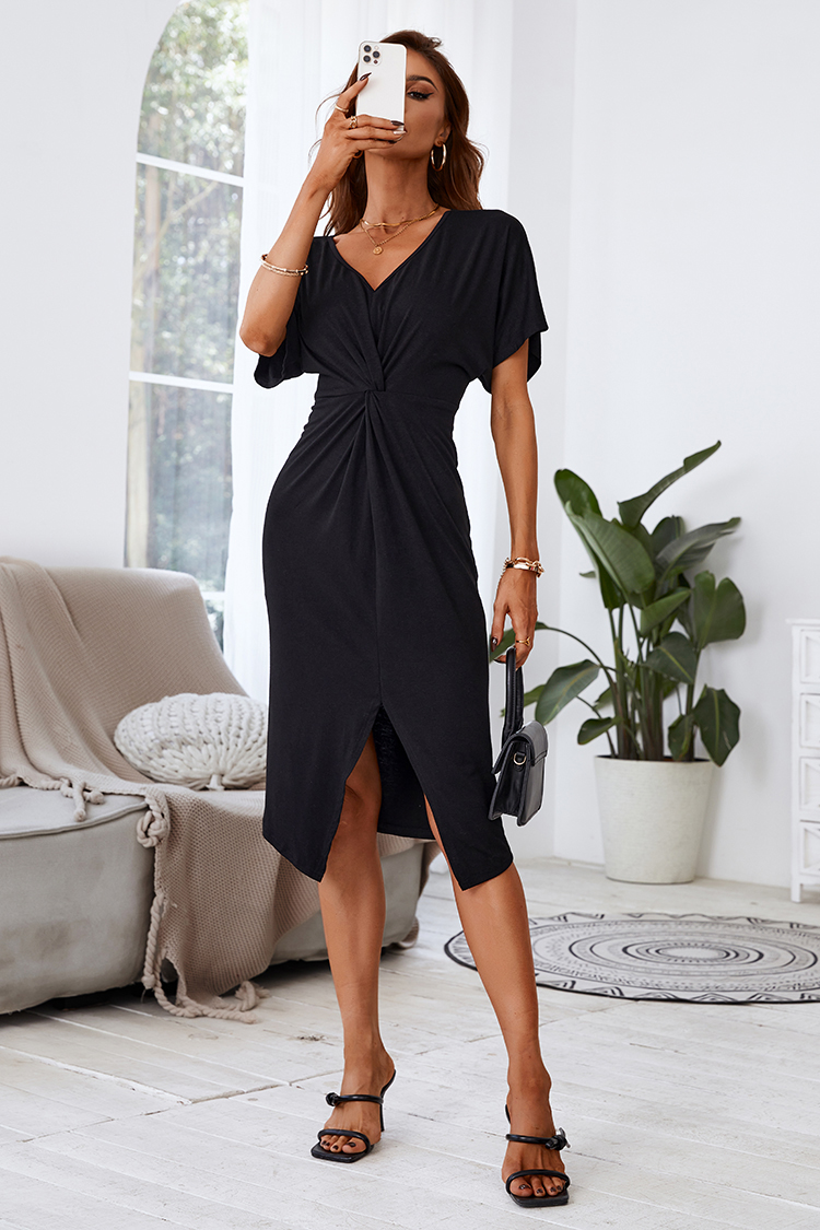 Kurzärmliges und Mittellanges Kleid mit V-Ausschnitt