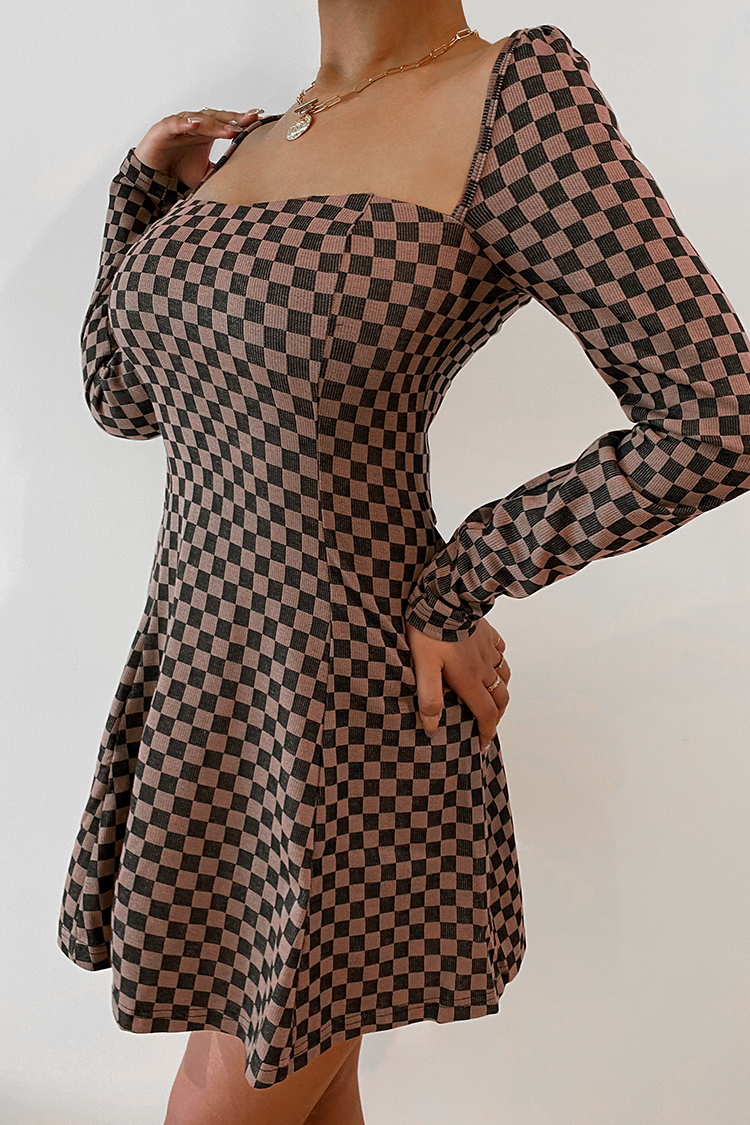 Kurzes Kleid mit eckigem Ausschnitt und Karomuster