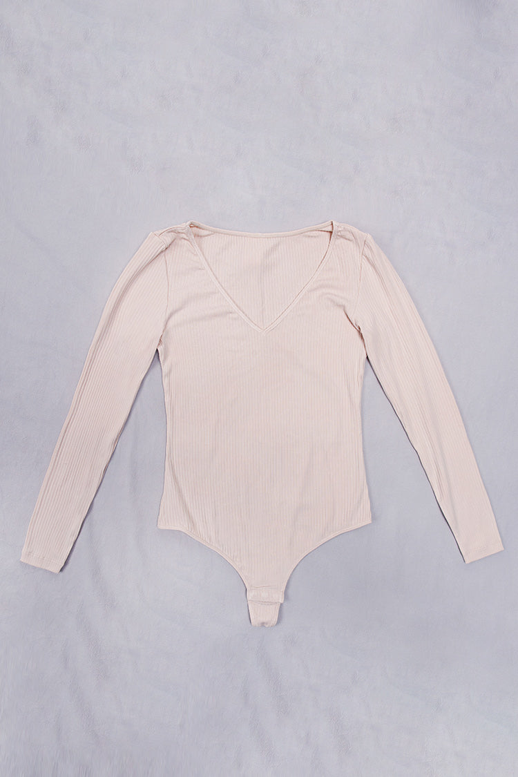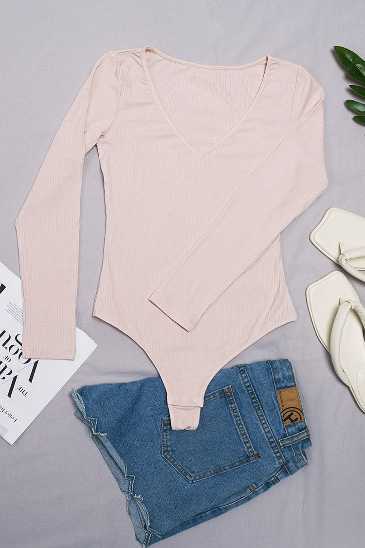 HomeLangärmeliger Bodysuit mit V-Ausschnitt aus Rippe