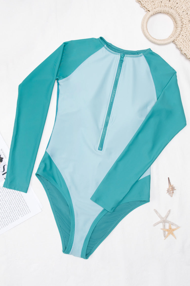 Langärmliger Badeanzug mit Front-Reißverschluss