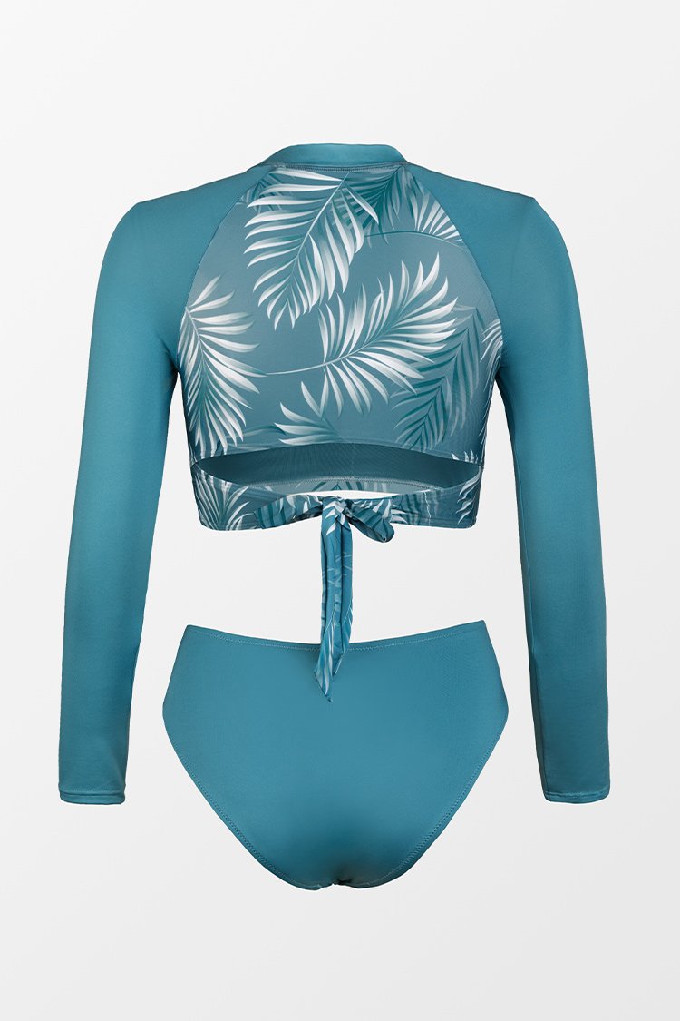 Langärmliger tropischer Tankini mit Rückenbindung