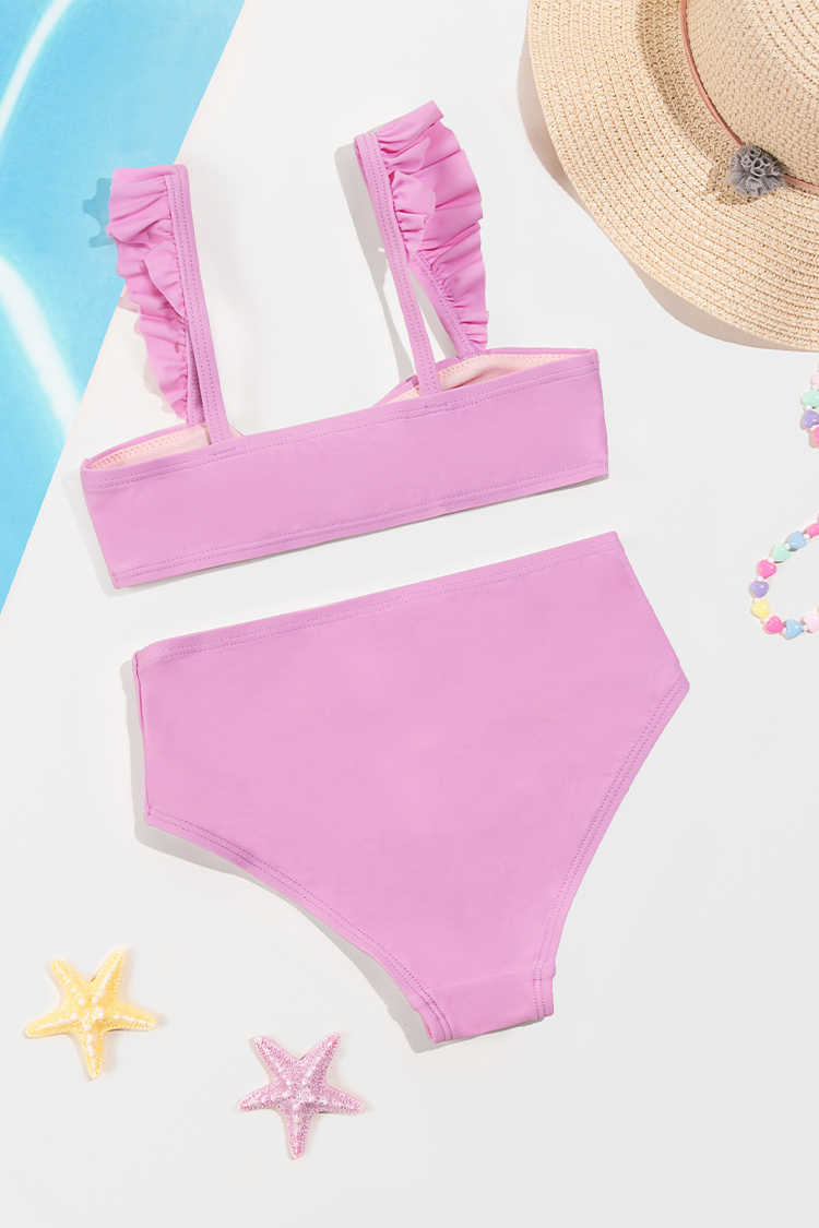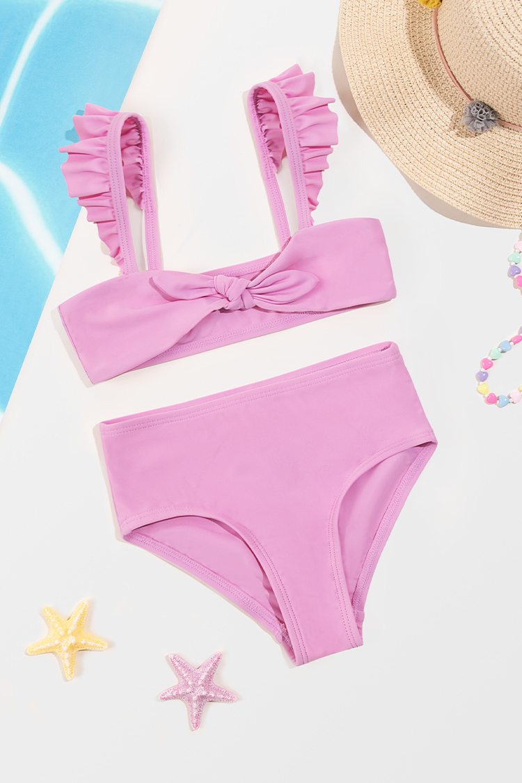 Faux Häschen-Krawatte Top & High Waist Bikini Set in Rosa