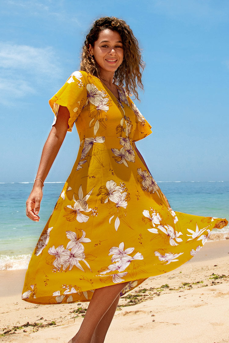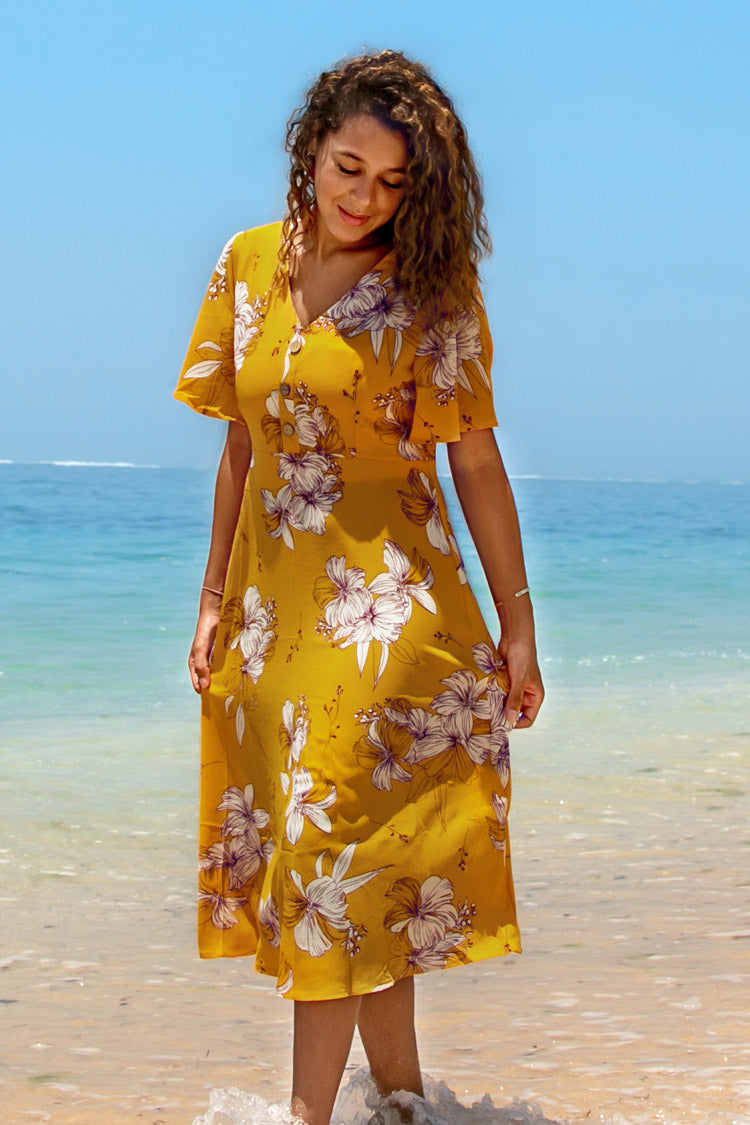 HomeLilien-Kleid mit V-Ausschnitt