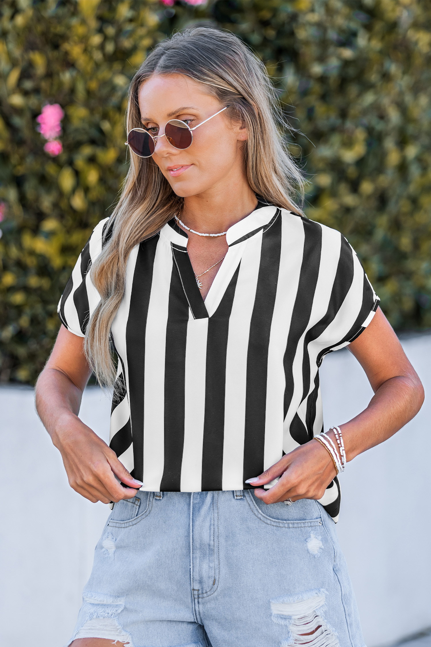 Gestreiftes Top mit gekerbtem Ausschnitt