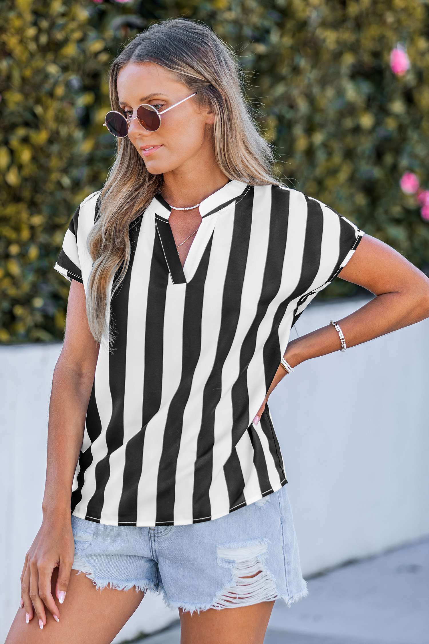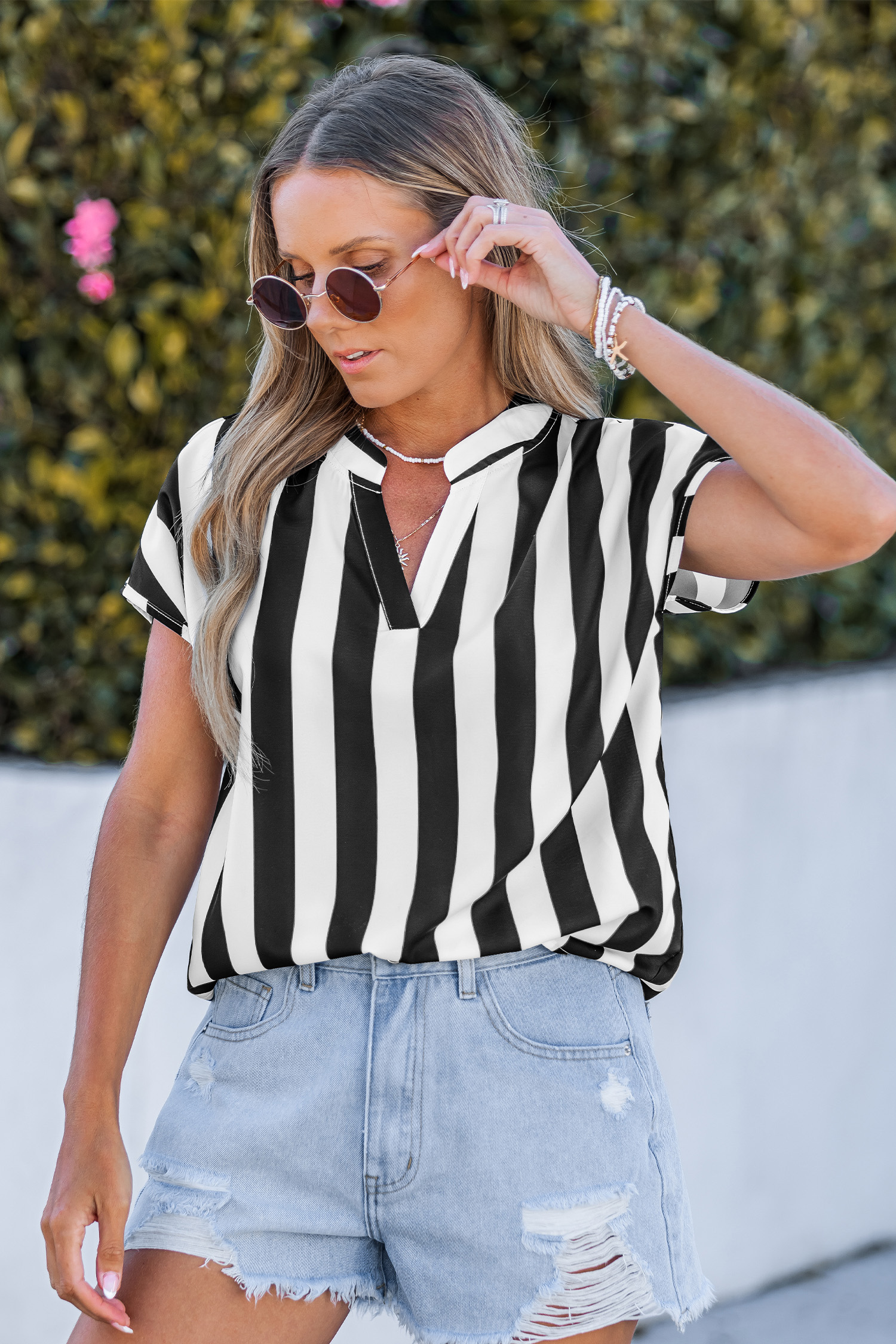 HomeGestreiftes Top mit gekerbtem Ausschnitt