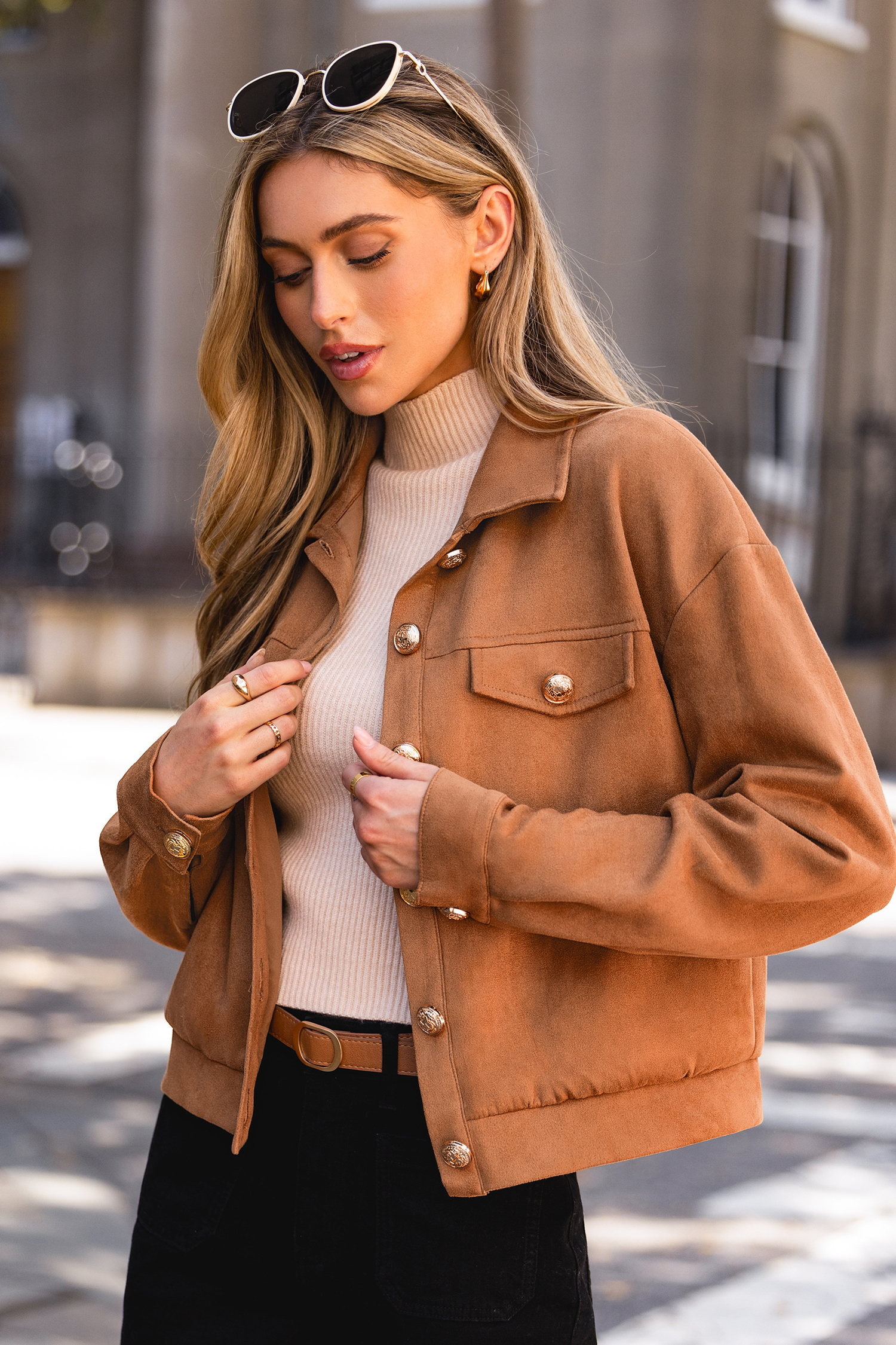 Die braune Jacke versprüht einen lässigen und zugleich eleganten Look! Mit Kragen, langen Ärmeln, Knopfleiste und praktischen Taschen ist sie das perfekte Kleidungsstück für die ganze Saison.
