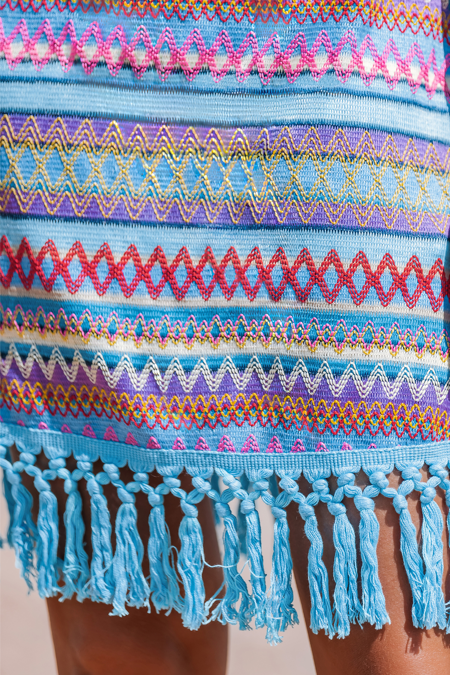 Gestreiftes Ärmelloses Minikleid mit Fransenbesatz