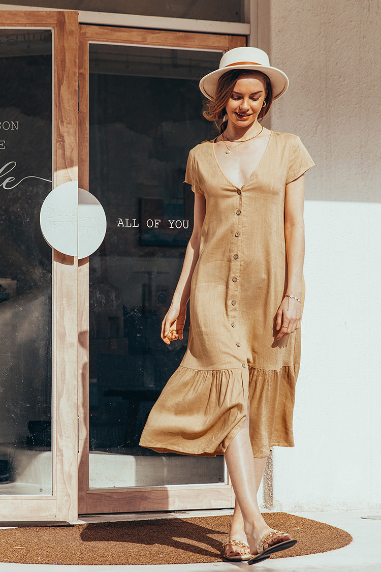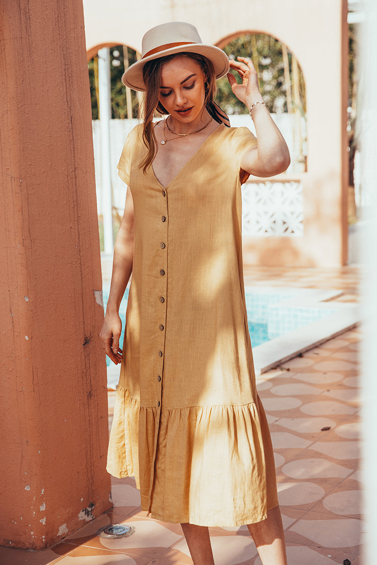HomeMaxi Kleid in A-Form mit V-Ausschnitt und Rüschen