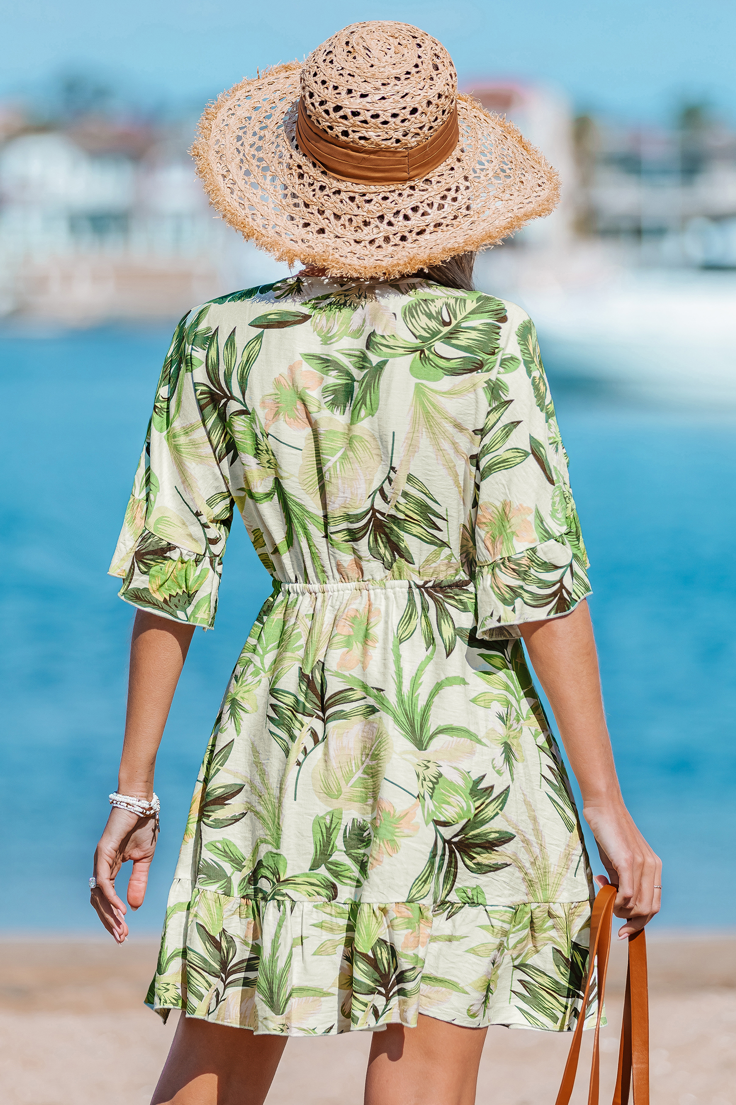 Mini-Strandkleid mit Taillenband und Rüschenbesatz