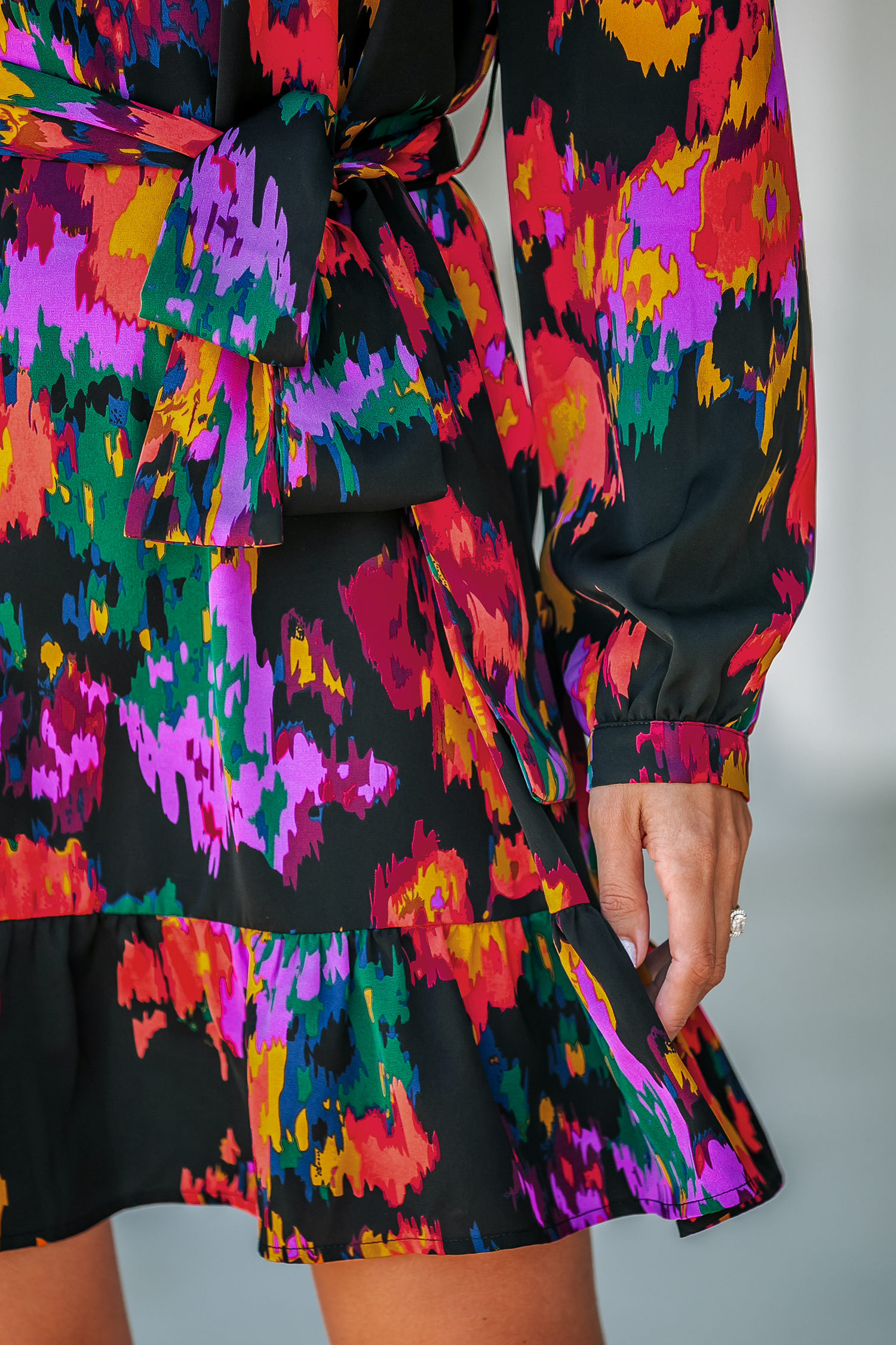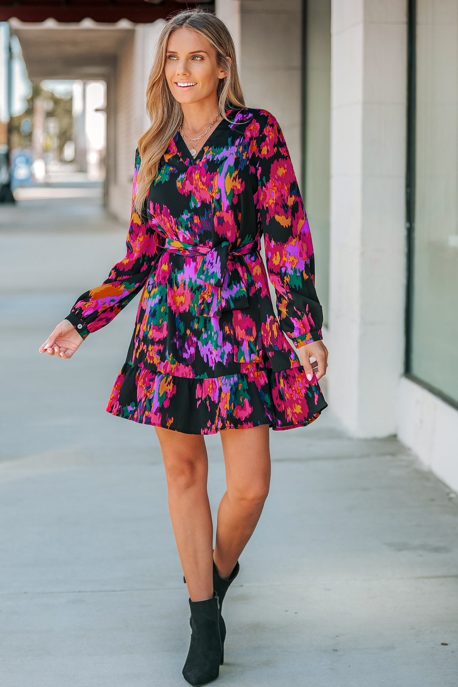HomeMinikleid mit Gürtel und abstraktem Muster
