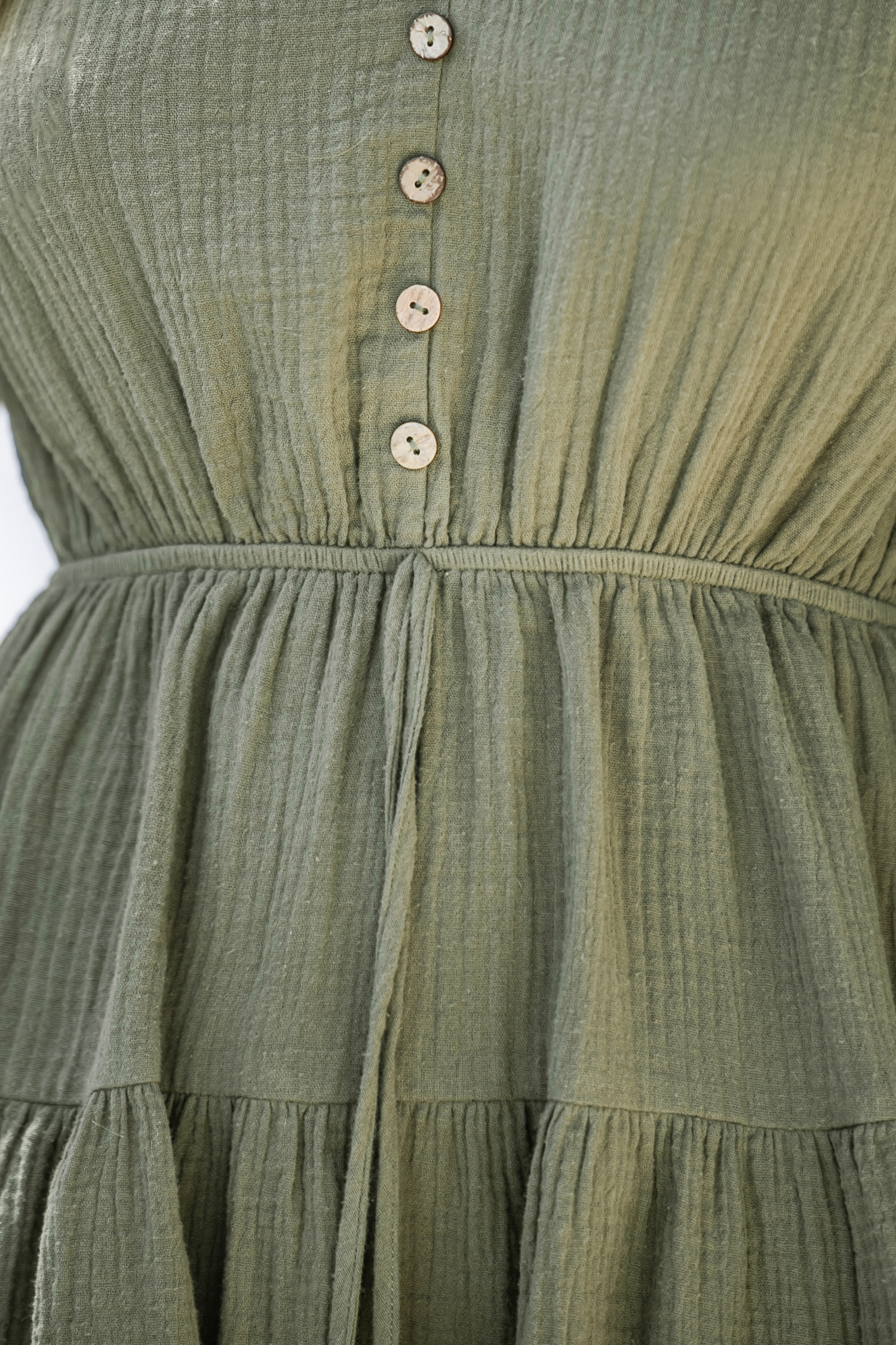 Reine Baumwolle Minikleid mit Knopfleiste und Quasten