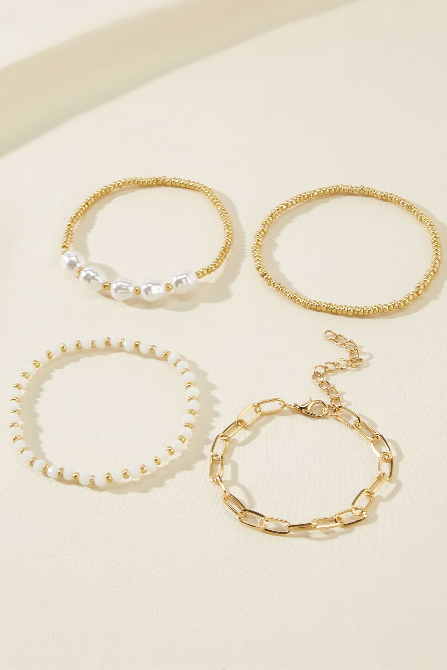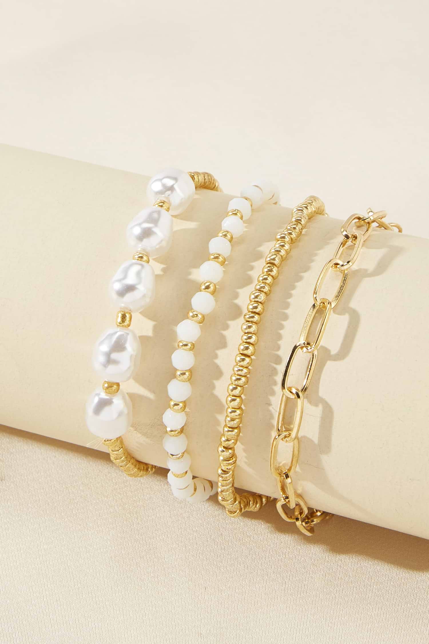 Das goldfarbene Armband-Set verleiht Ihrem Handgelenk mühelose Eleganz! Mit verschiedenen Ketten und zarten Kunstperlen lässt es sich perfekt kombinieren oder solo tragen für einen raffinierten, alltagstauglichen Look.