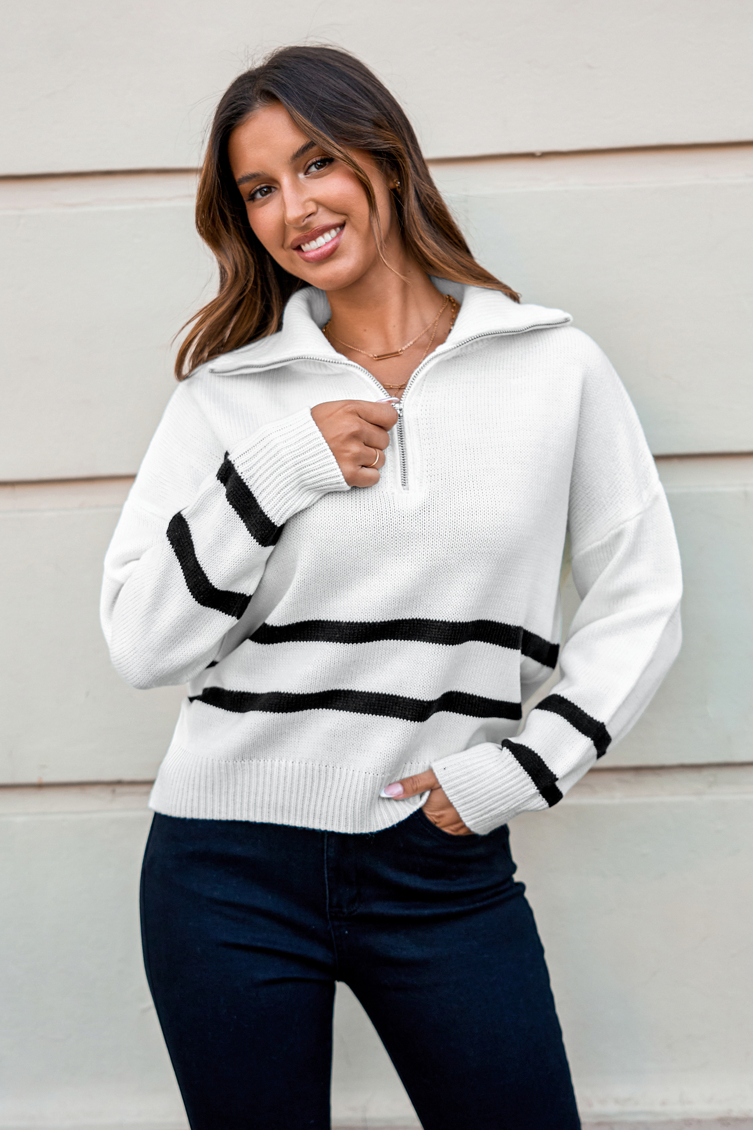 Nautischer Pullover mit Kragen und Frontreißverschluss