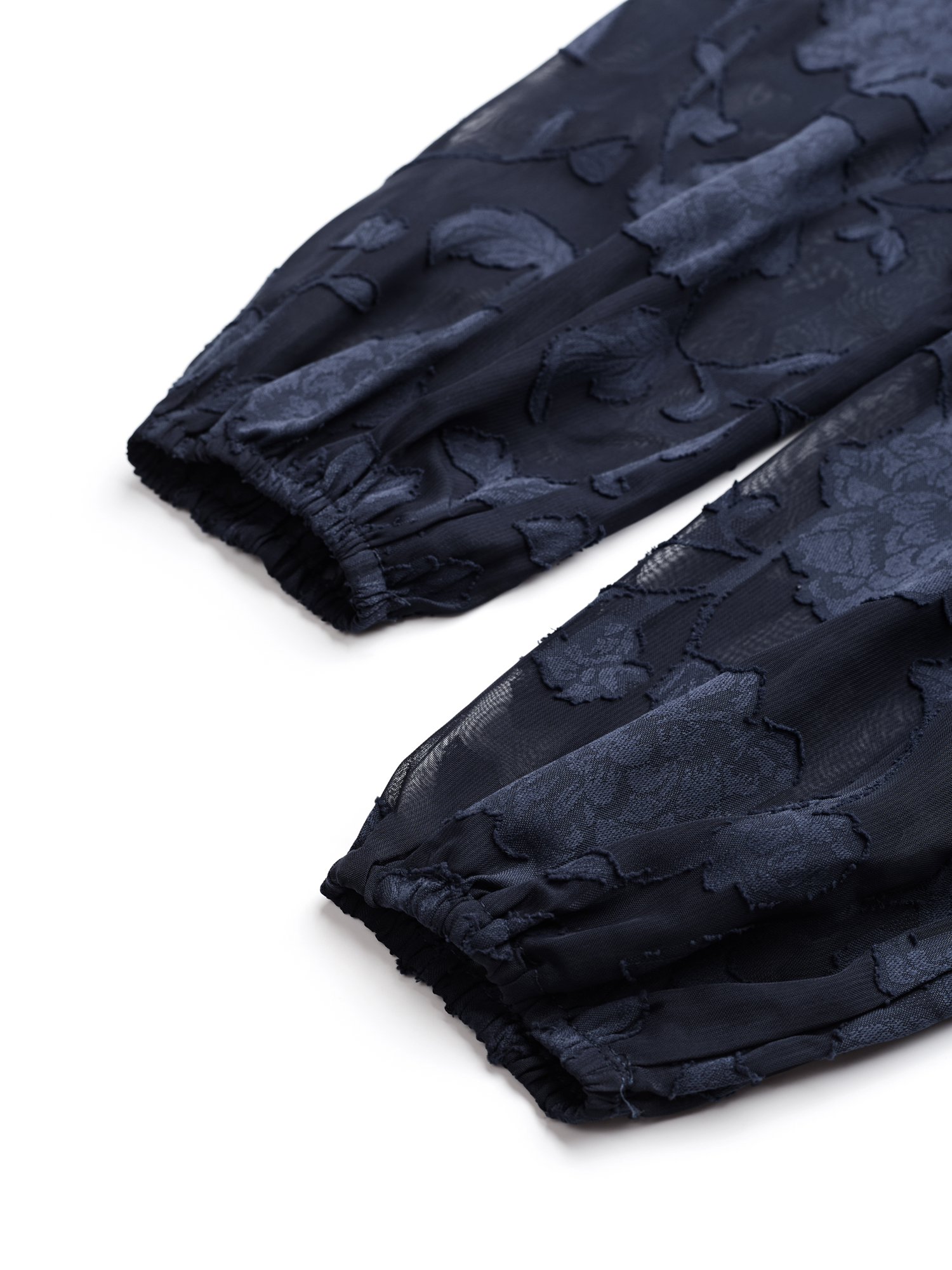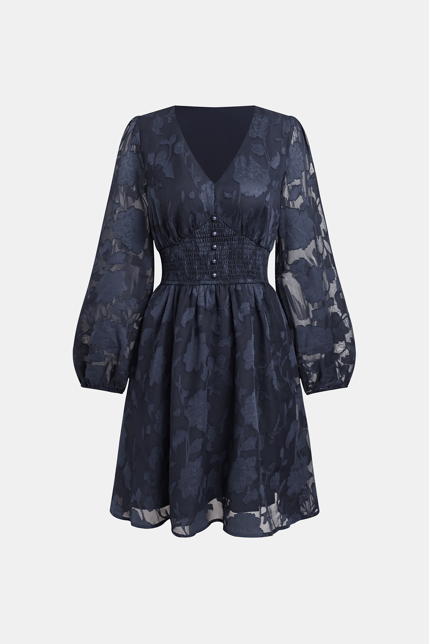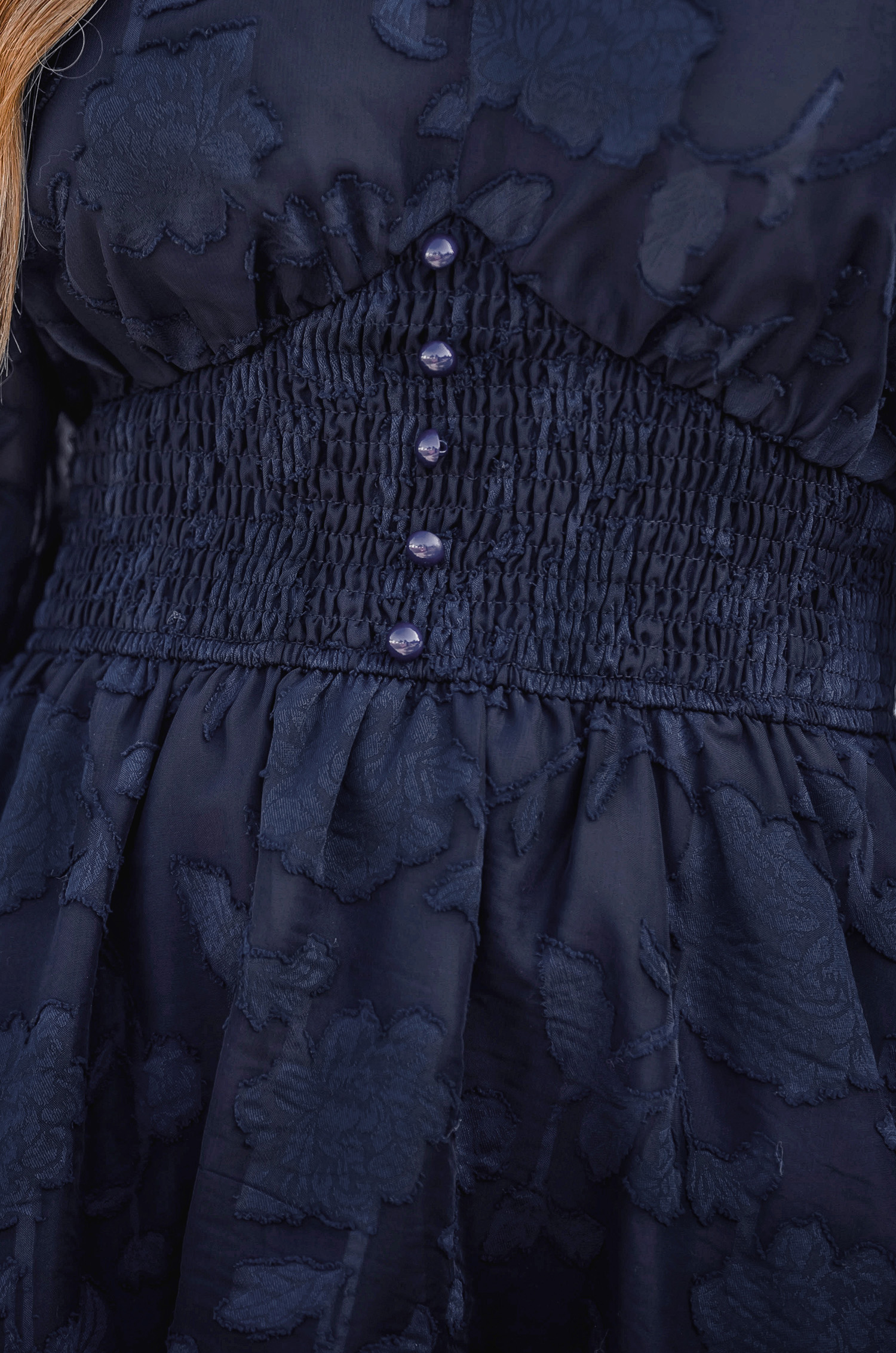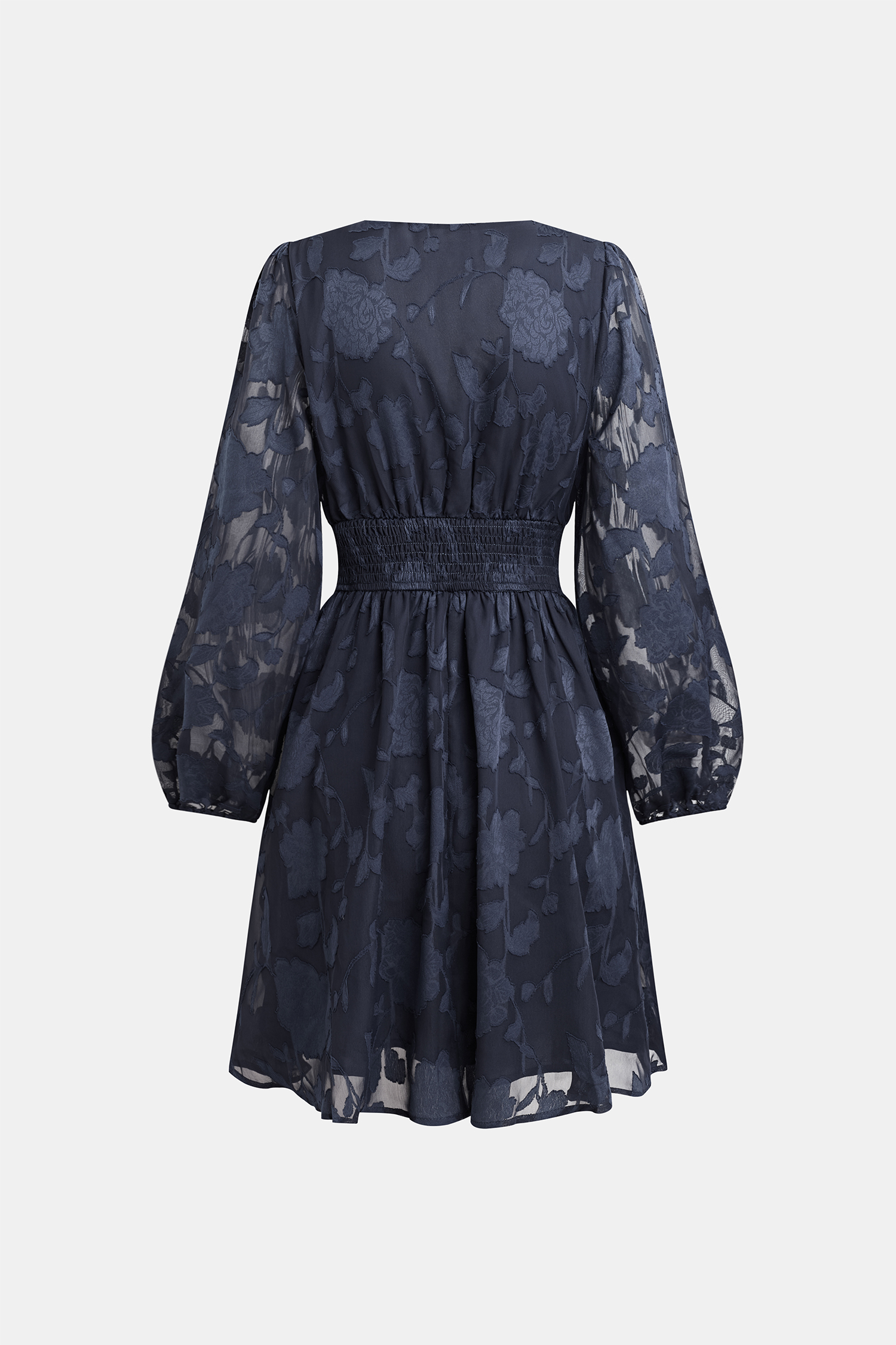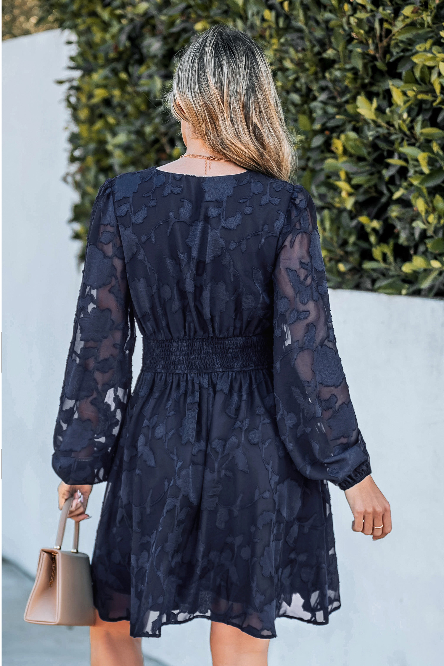 Marineblaues langärmeliges Minikleid mit Blumenmuster