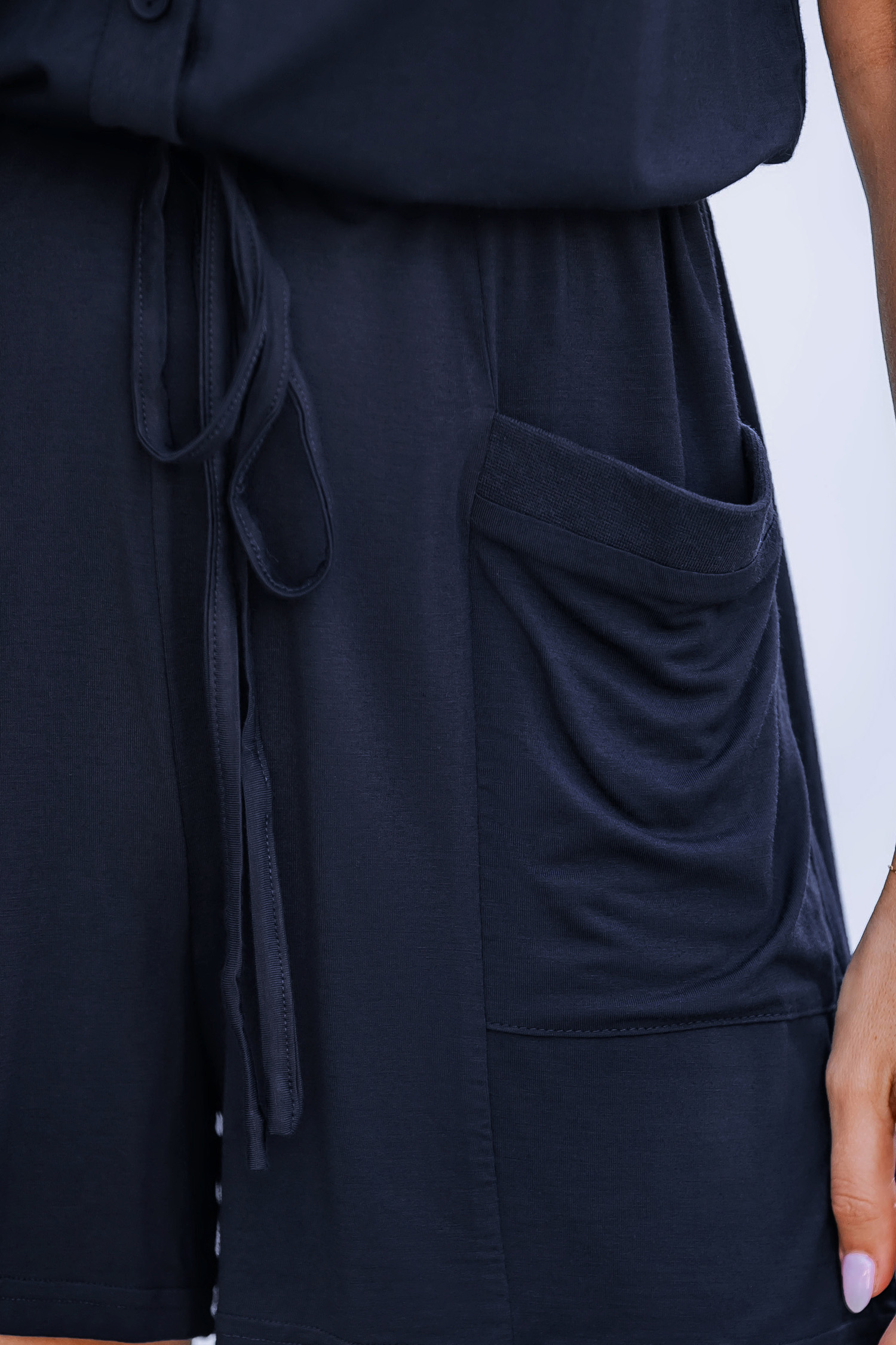 Marinefarbener ärmelloser Strampler mit geradem Bein
