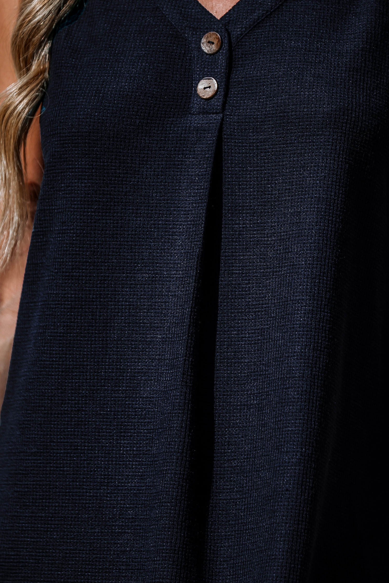 Marinefarbenes ärmelloses Jersey-Minikleid mit V-Ausschnitt