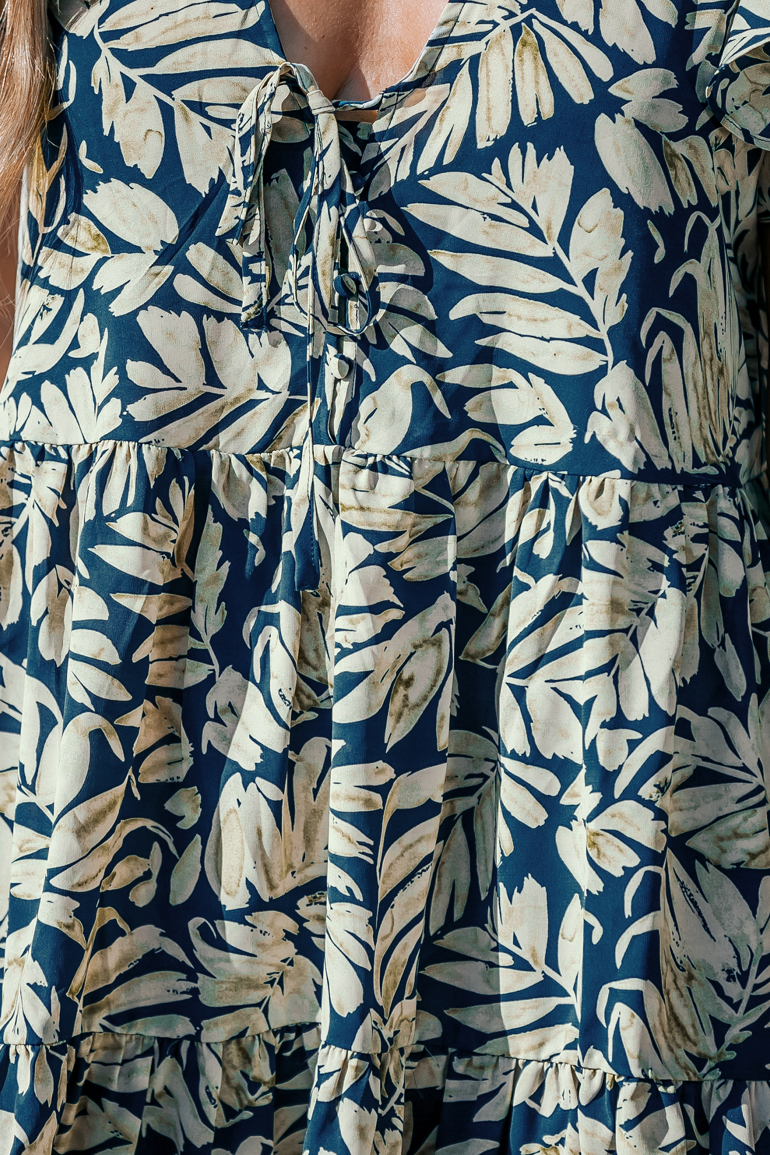 Marineblaues Tropisches Minikleid mit ausgestellten Ärmeln