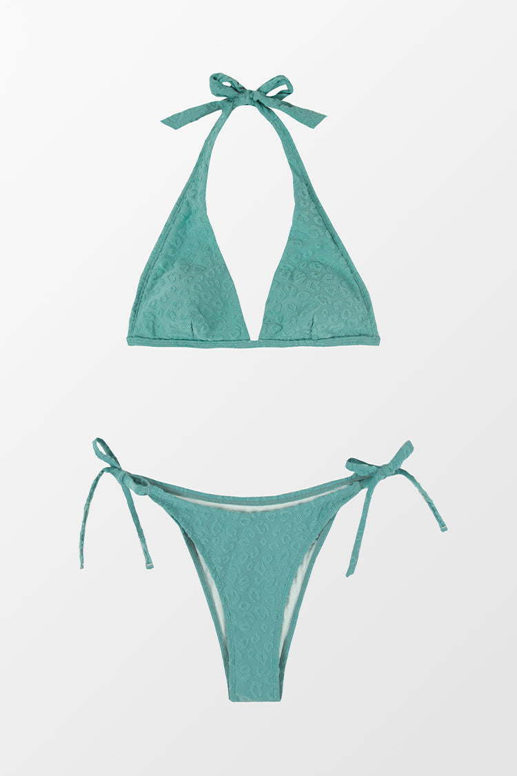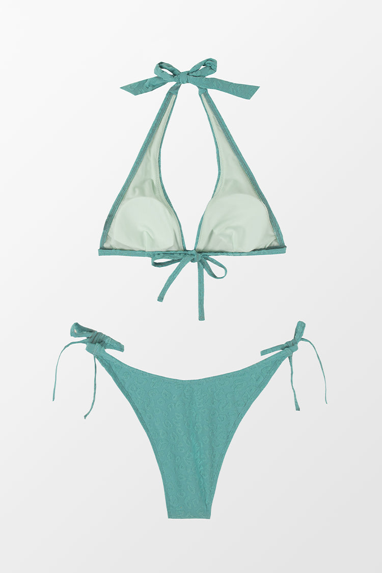 HomeLeopard Jacquard Neckholder-Top & String-Bikini-Set