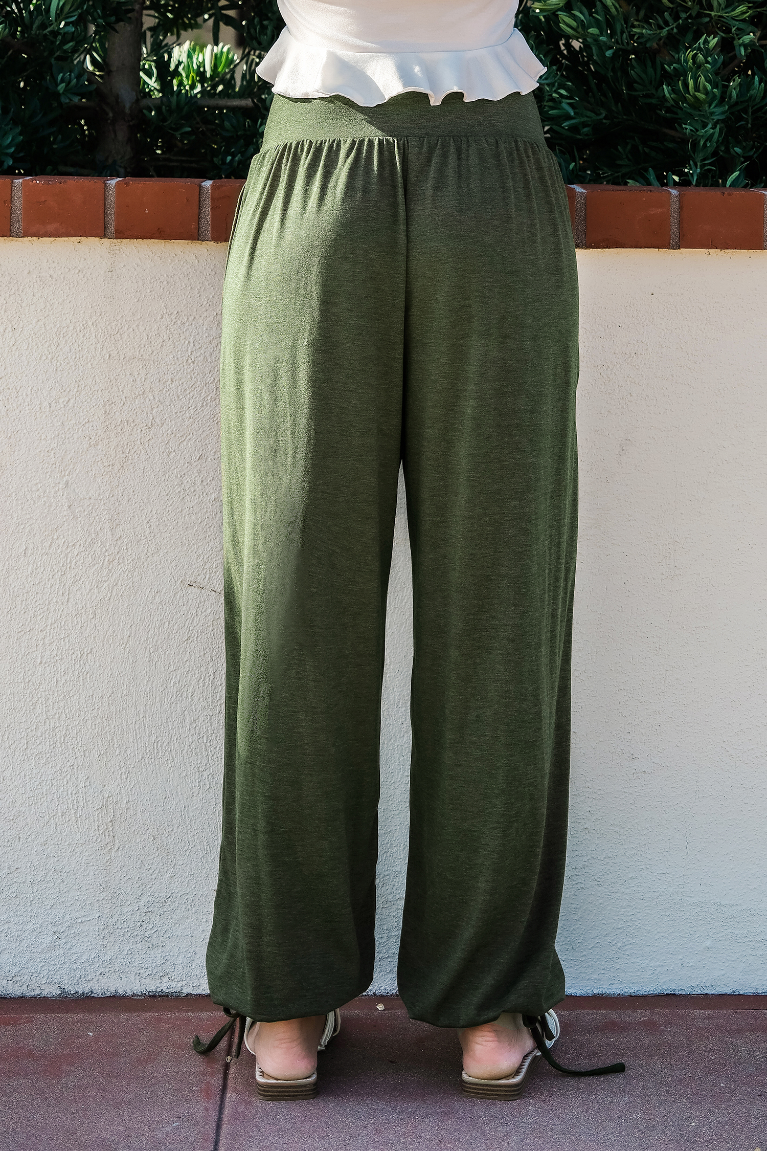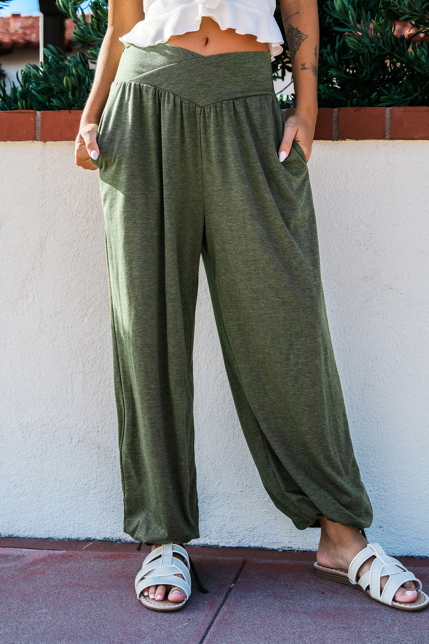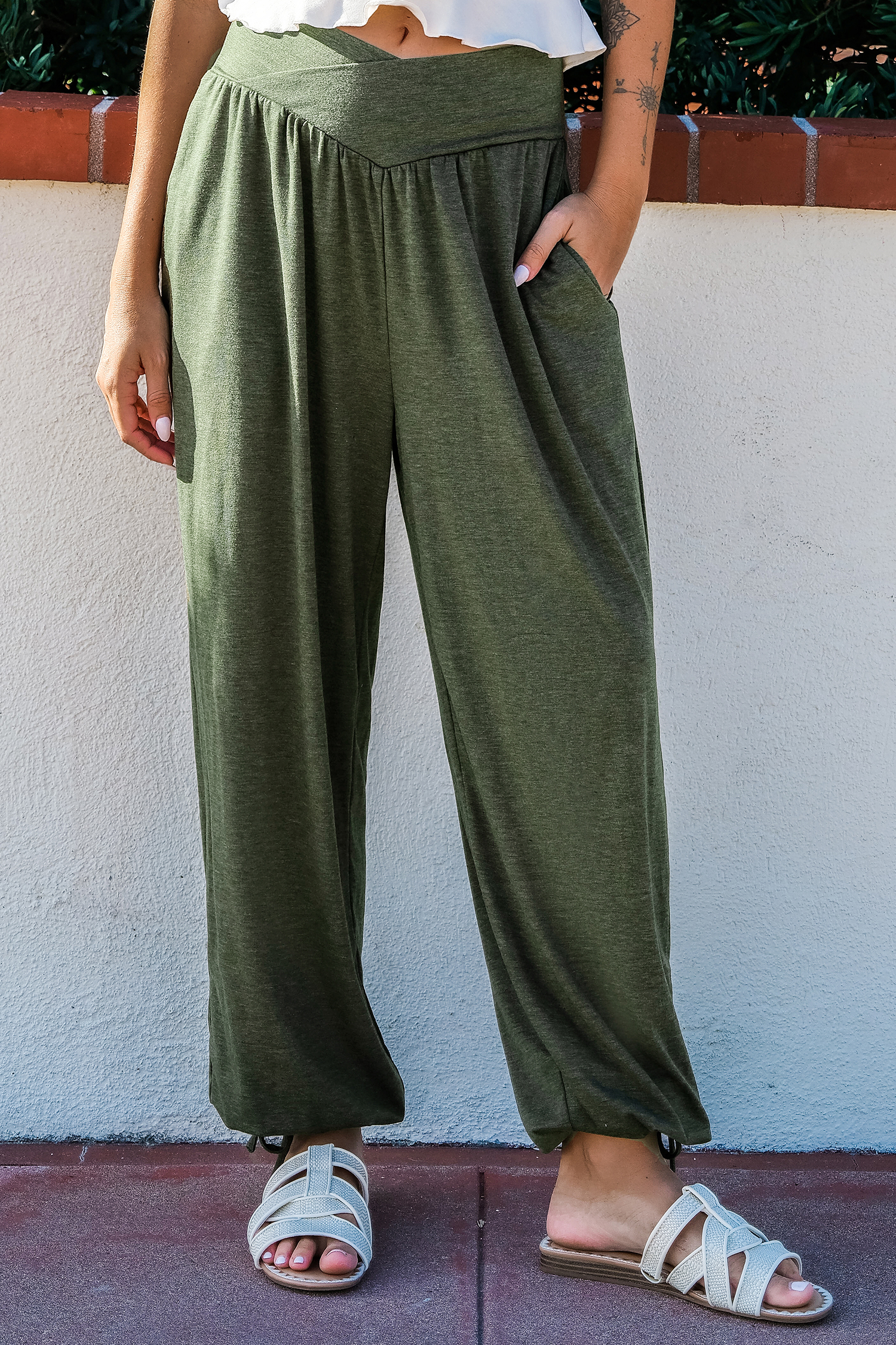 Olivfarbene Hose mit geradem Bein und überschnittener Taille