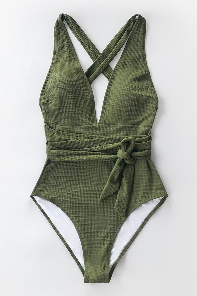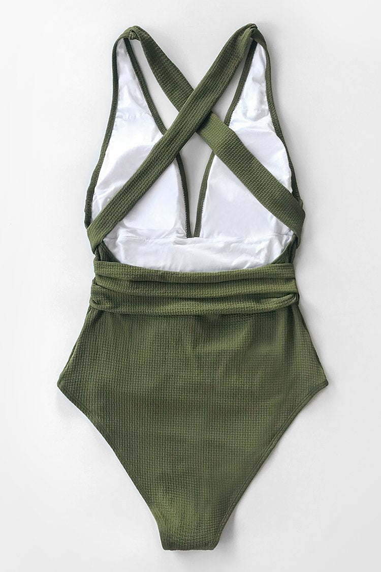 Olivgrüner strukturierter Badeanzug