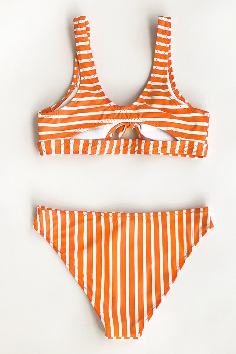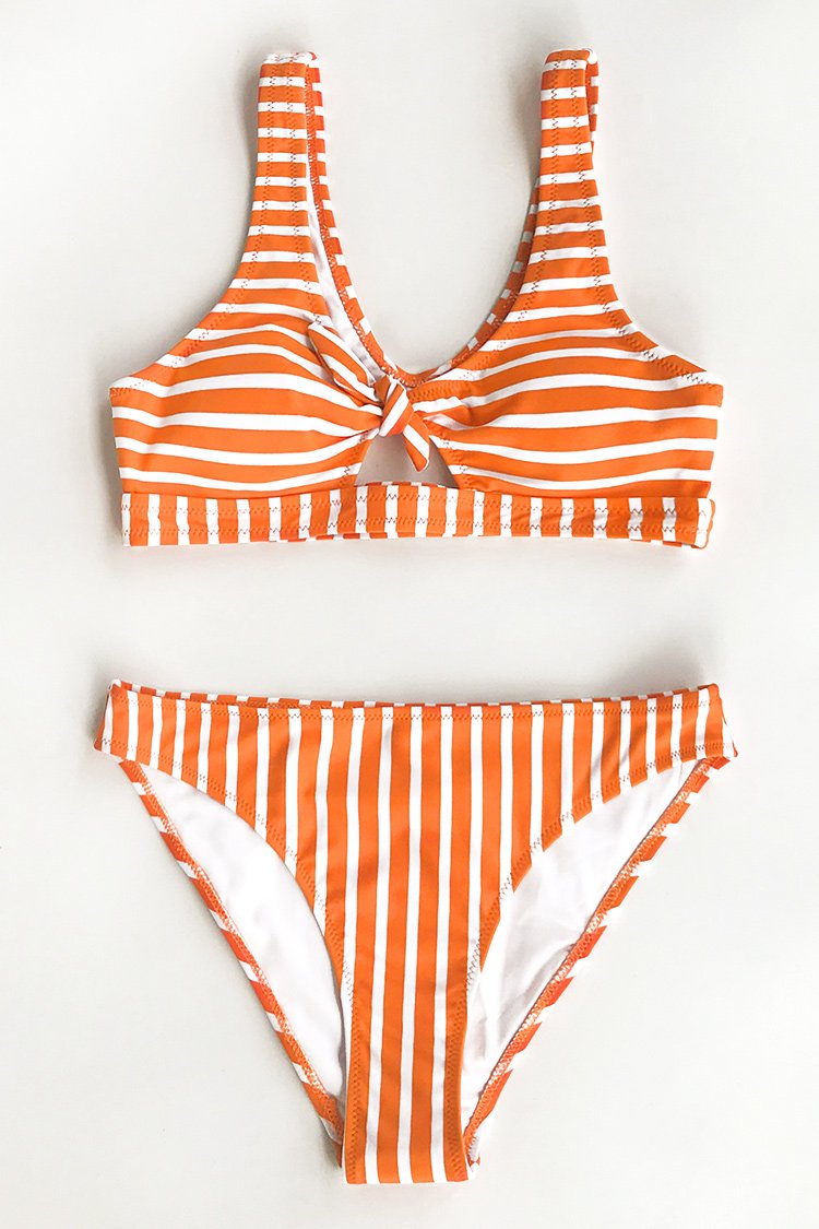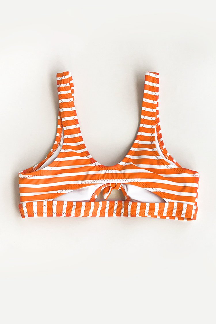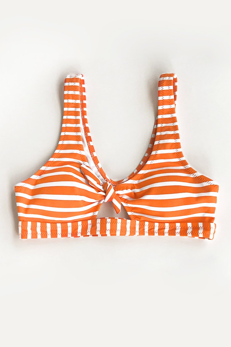 Orange und Weiße Streifen Bikini Oberteil mit Bowknot