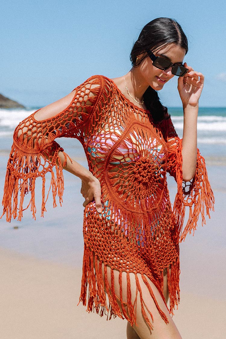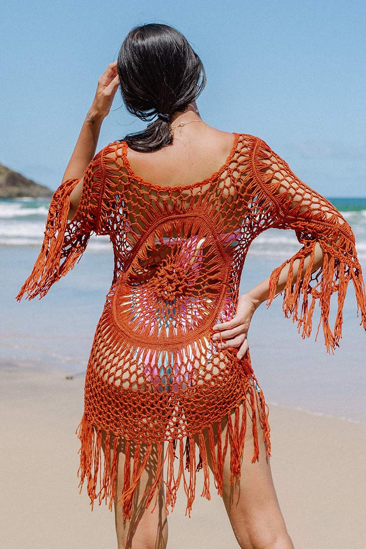 HomeOrangefarbenes gehäkeltes Cover-Up mit Quasten