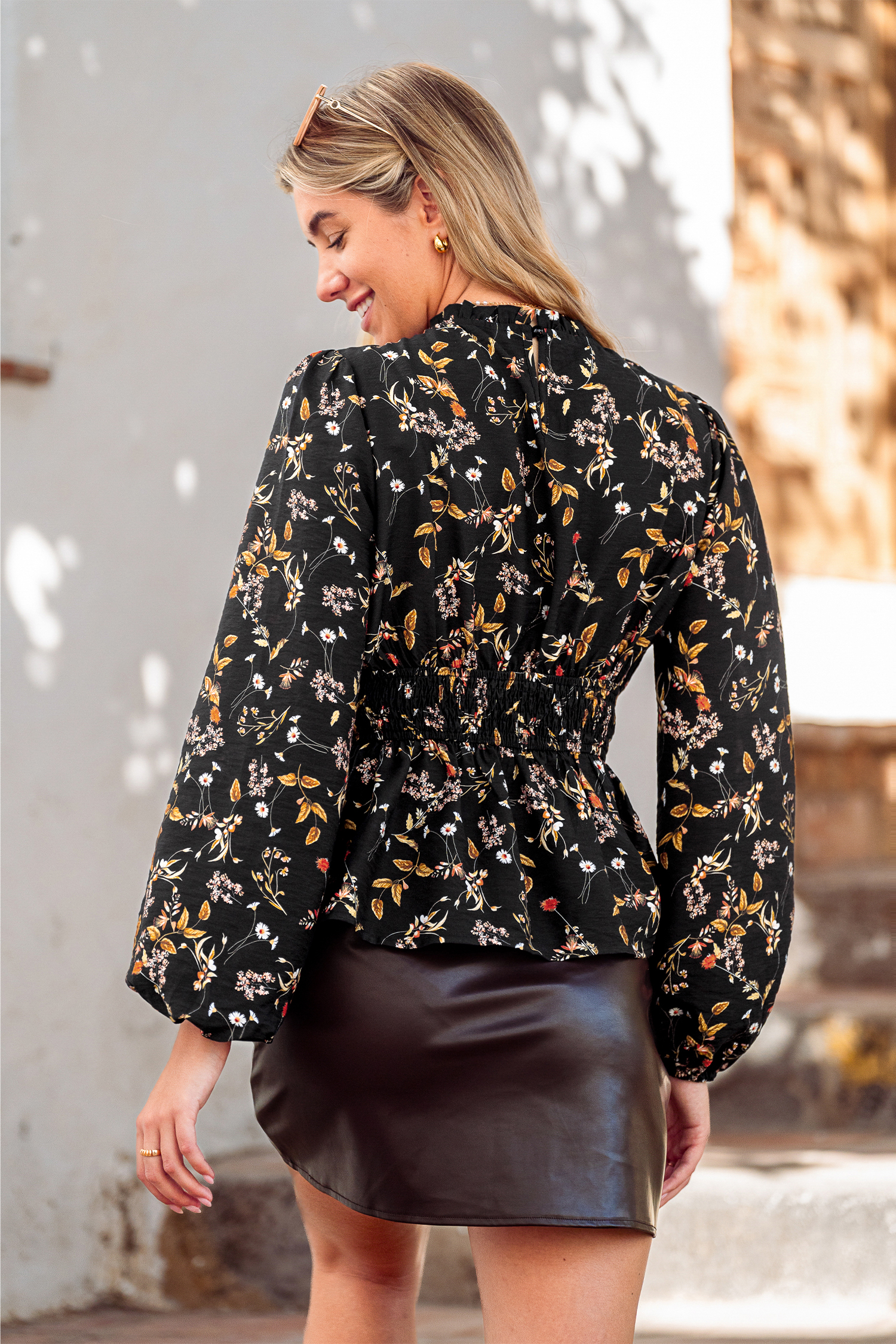 Das Top bringt verspielten, femininen Charme in jedes Outfit! Hoher Halsausschnitt, lange Ärmel und ein Schößchensaum verleihen ihm einen verspielten und gleichzeitig eleganten Touch.